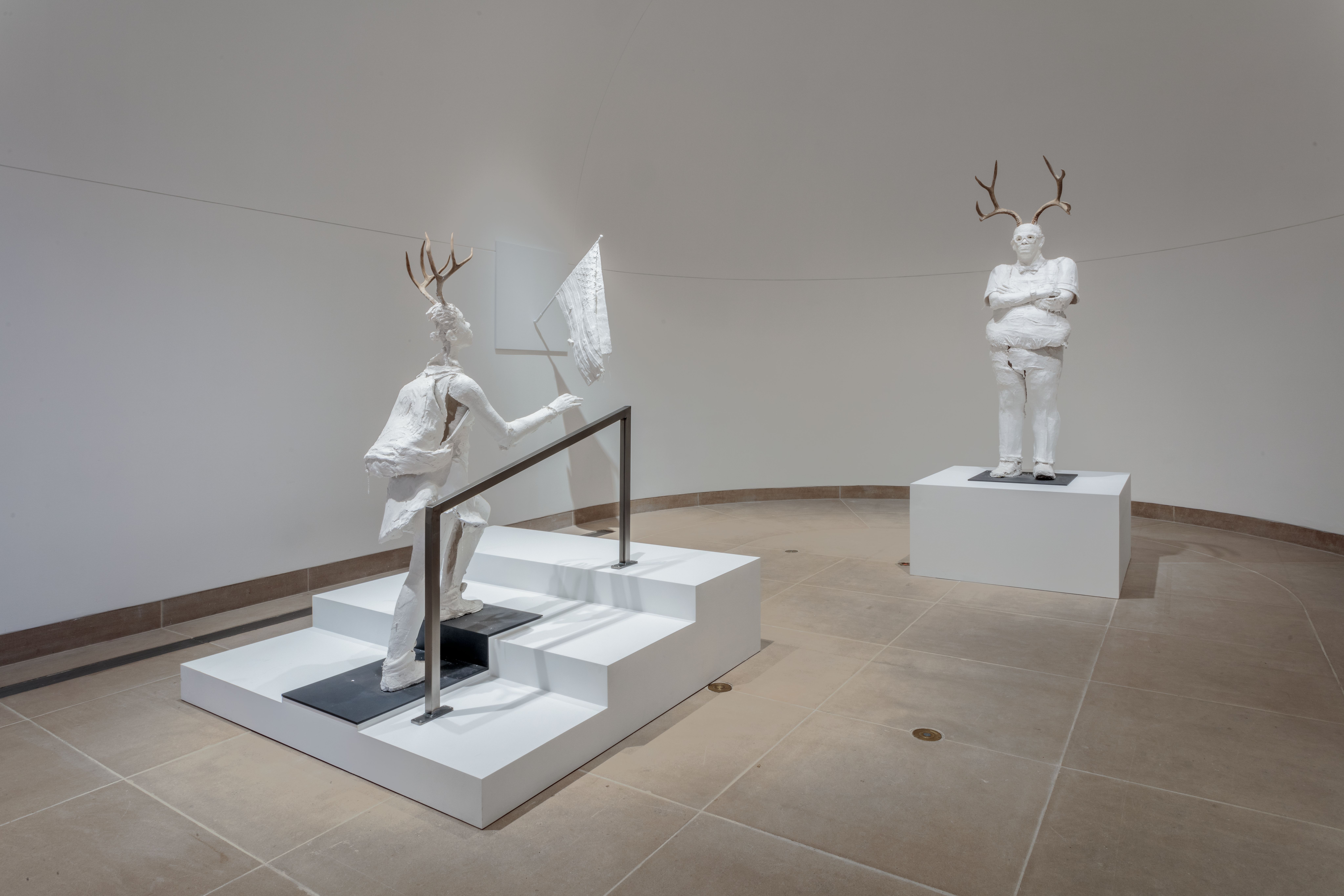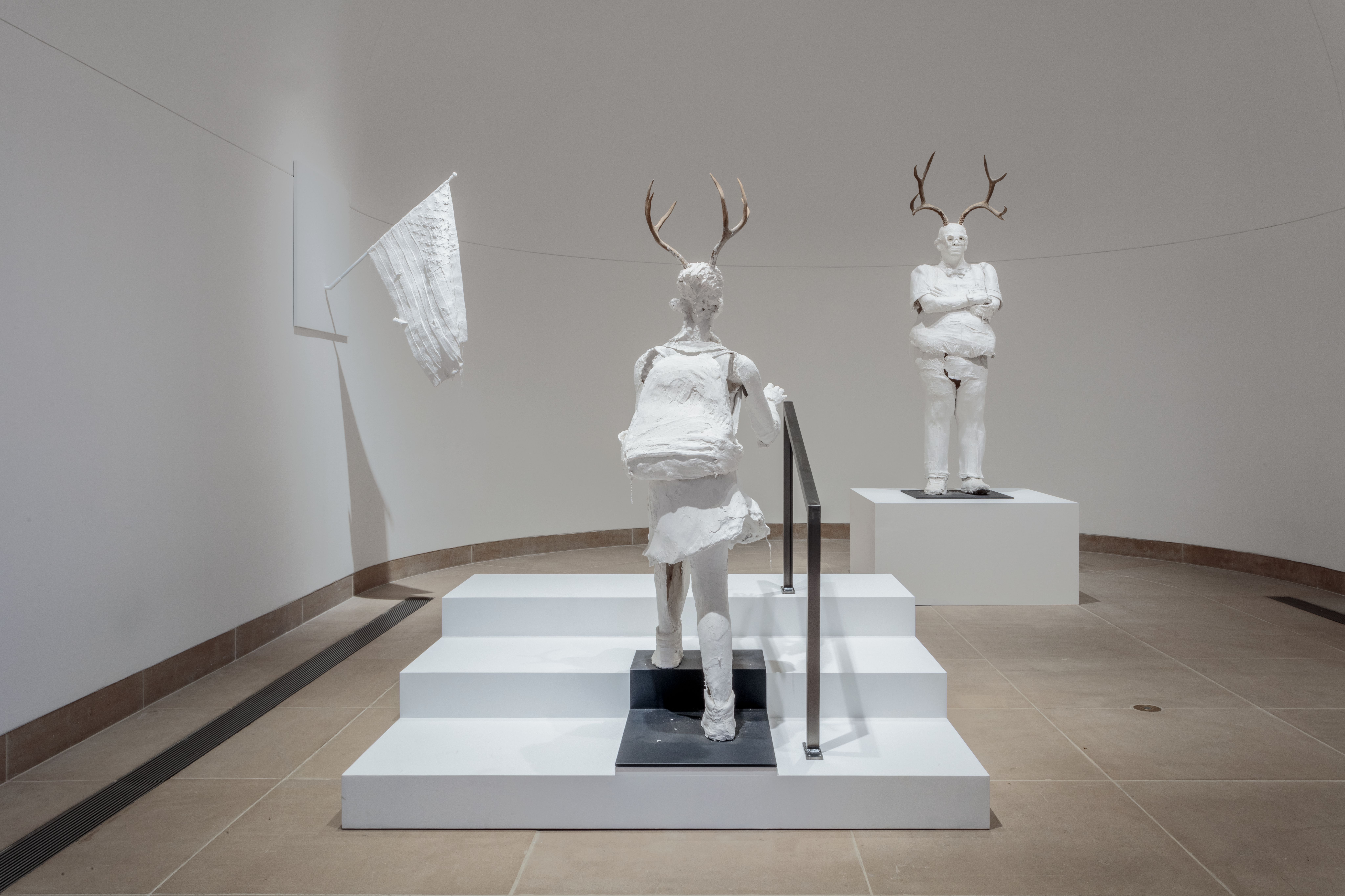 Acquired from the artists’ 2019 project GAME, an outdoor commission for the back lot at Paramount Studios in Los Angeles, this installation of three figures rendered in Davis’s familiar lexicon of plaster and wire remarks on the long and continuing legacies of violence in American schools