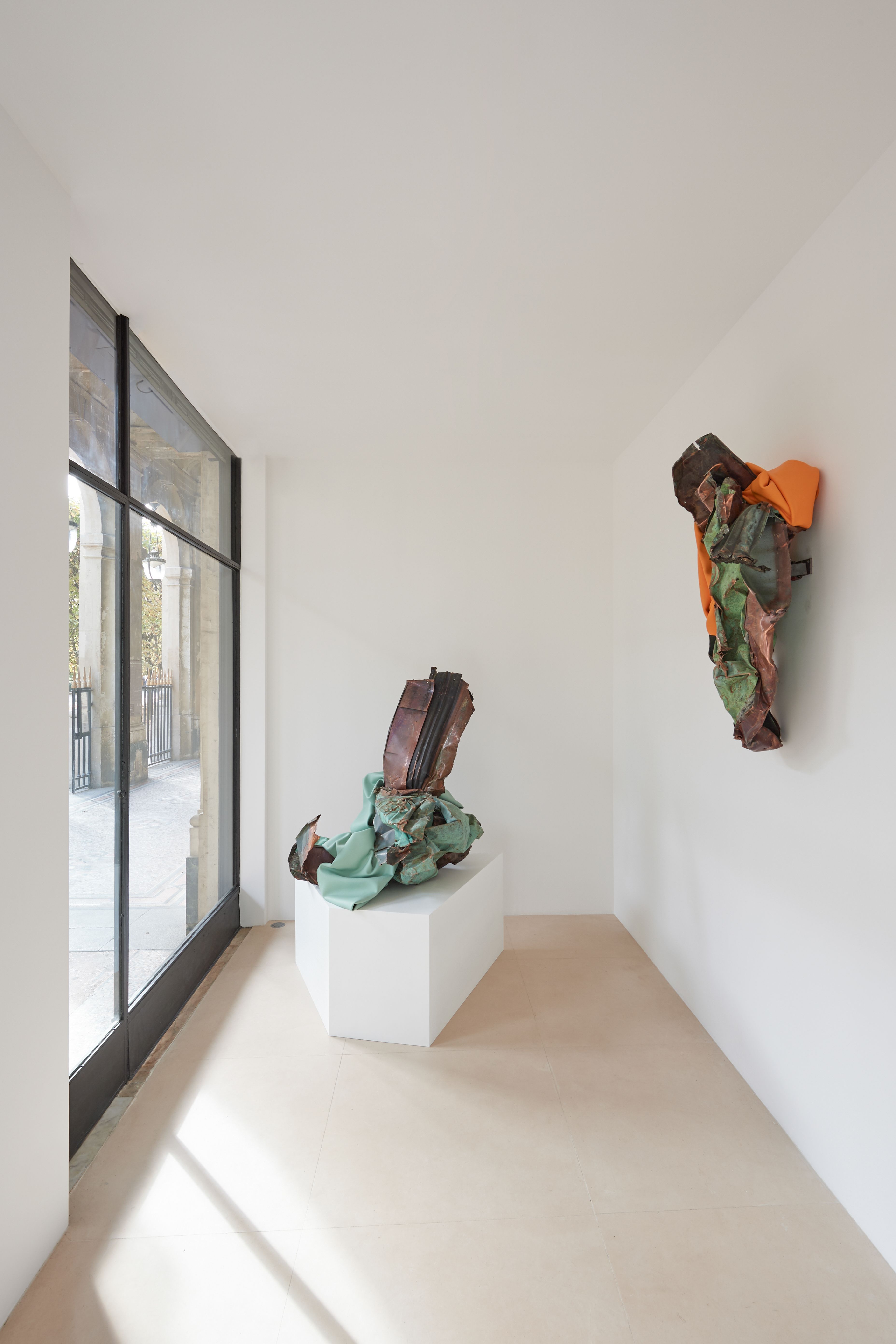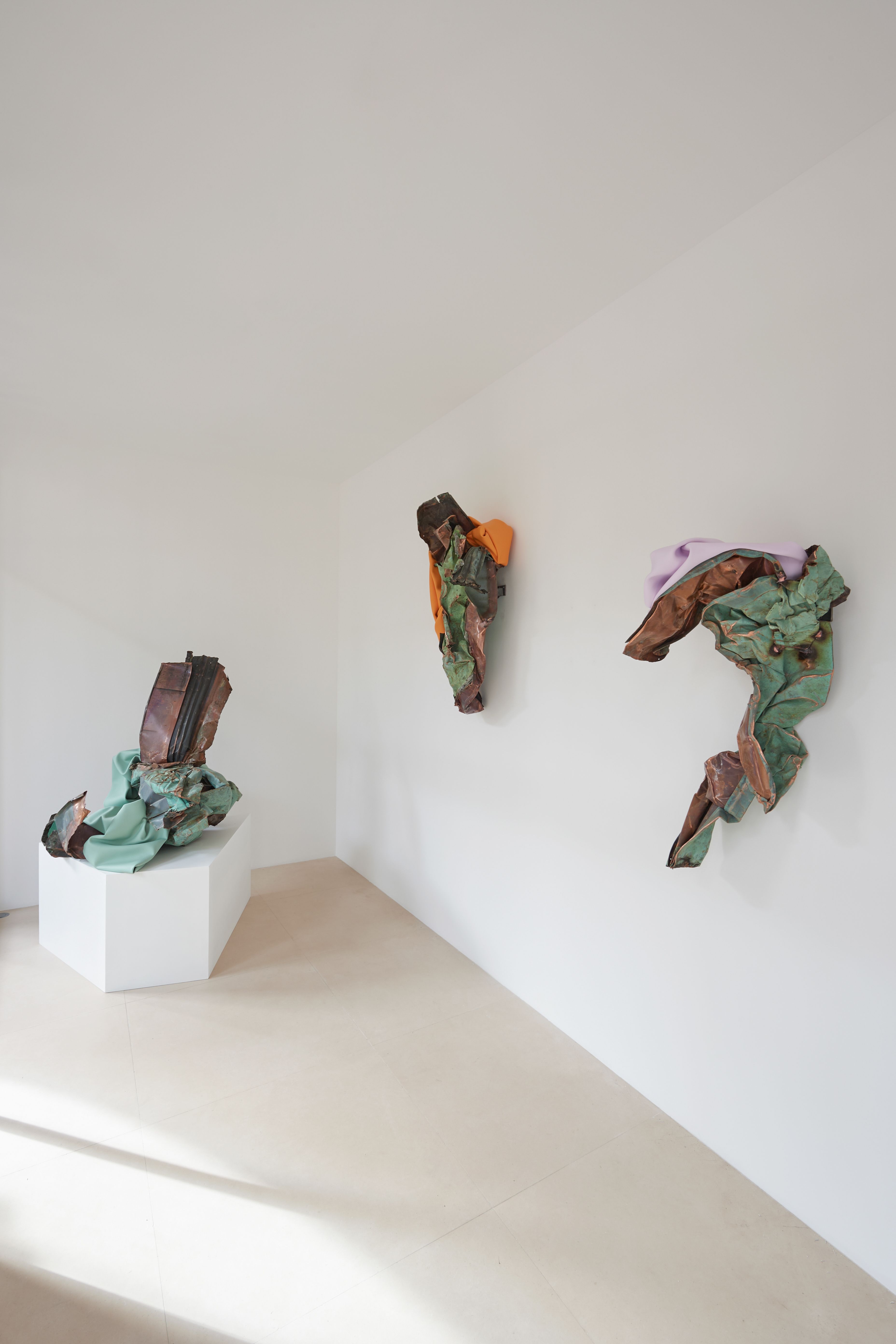 While Yanko has previously ventured into experimentation with a range of materials, including aluminum, copper, steel, and zinc, "She is a Verb" stands out for its exclusive embrace of copper, marking a continued exploration of this metal. Following her debut with Three Generations (2021) at Salon 94 in New York, a powerful storm sheared sections of the gallery’s original copper roof, sending portions of it flying onto the street below. Confronted with the shock of this twisted material, we asked Yanko to give it new life on the occasion of this exhibition.