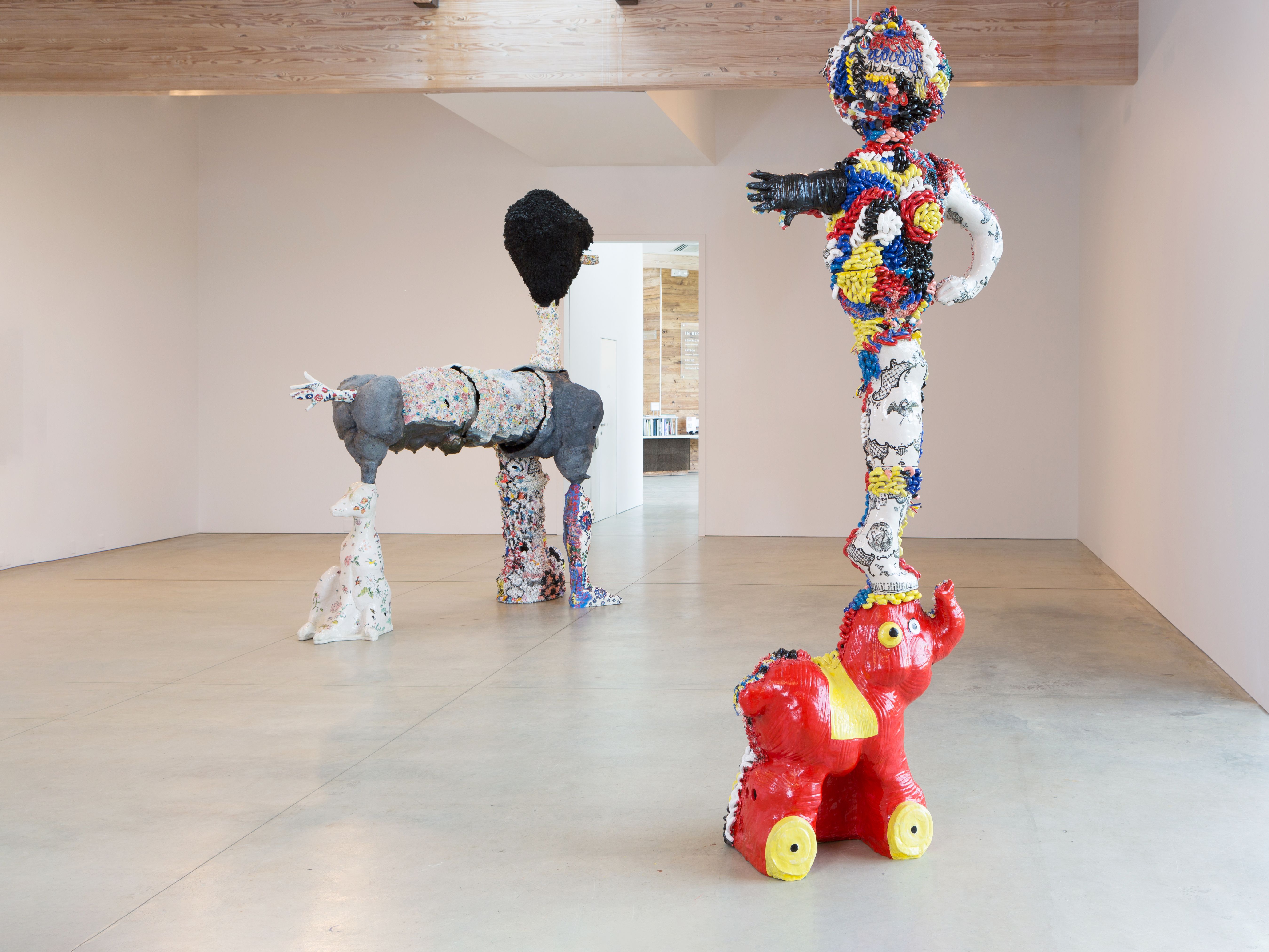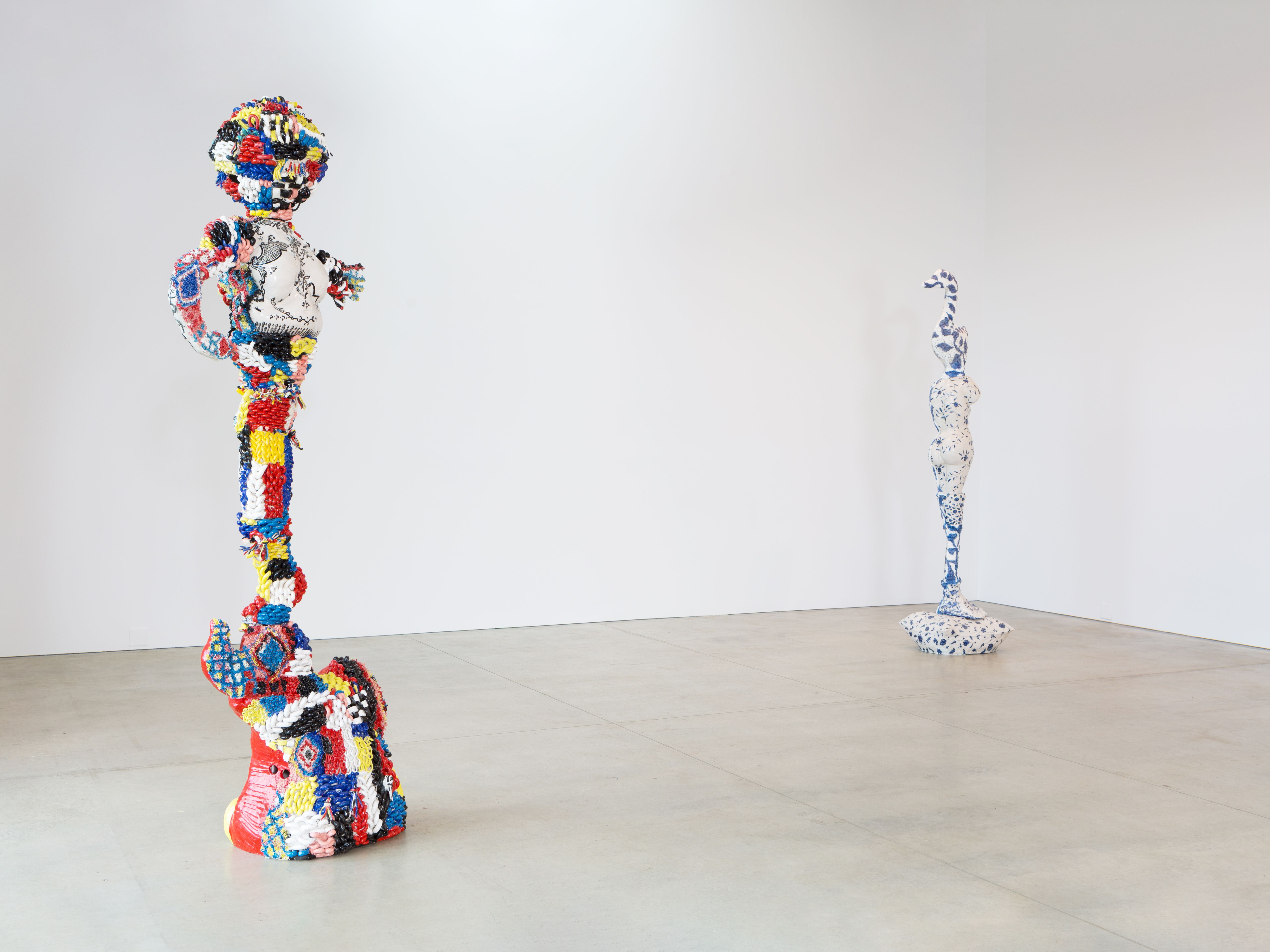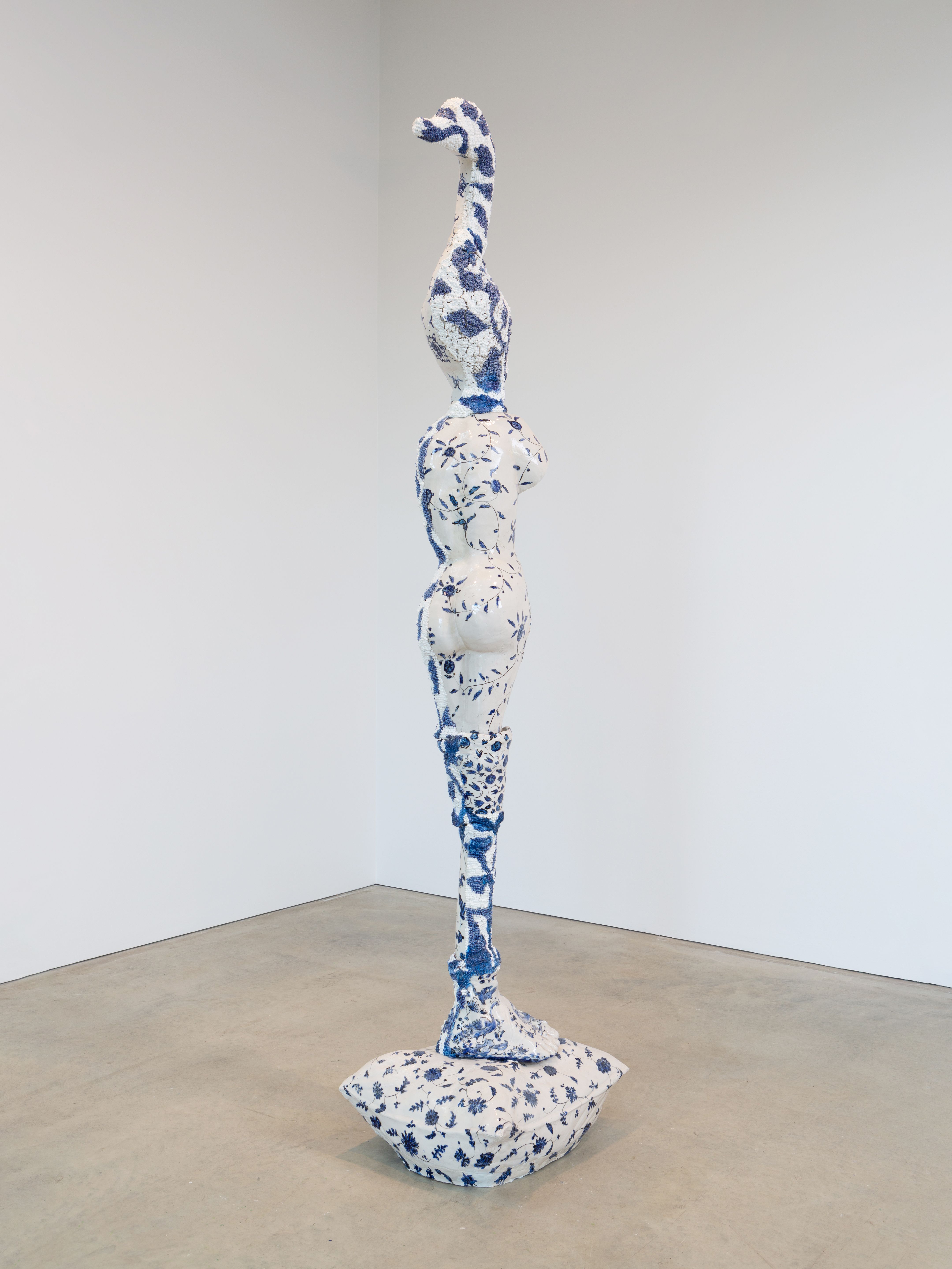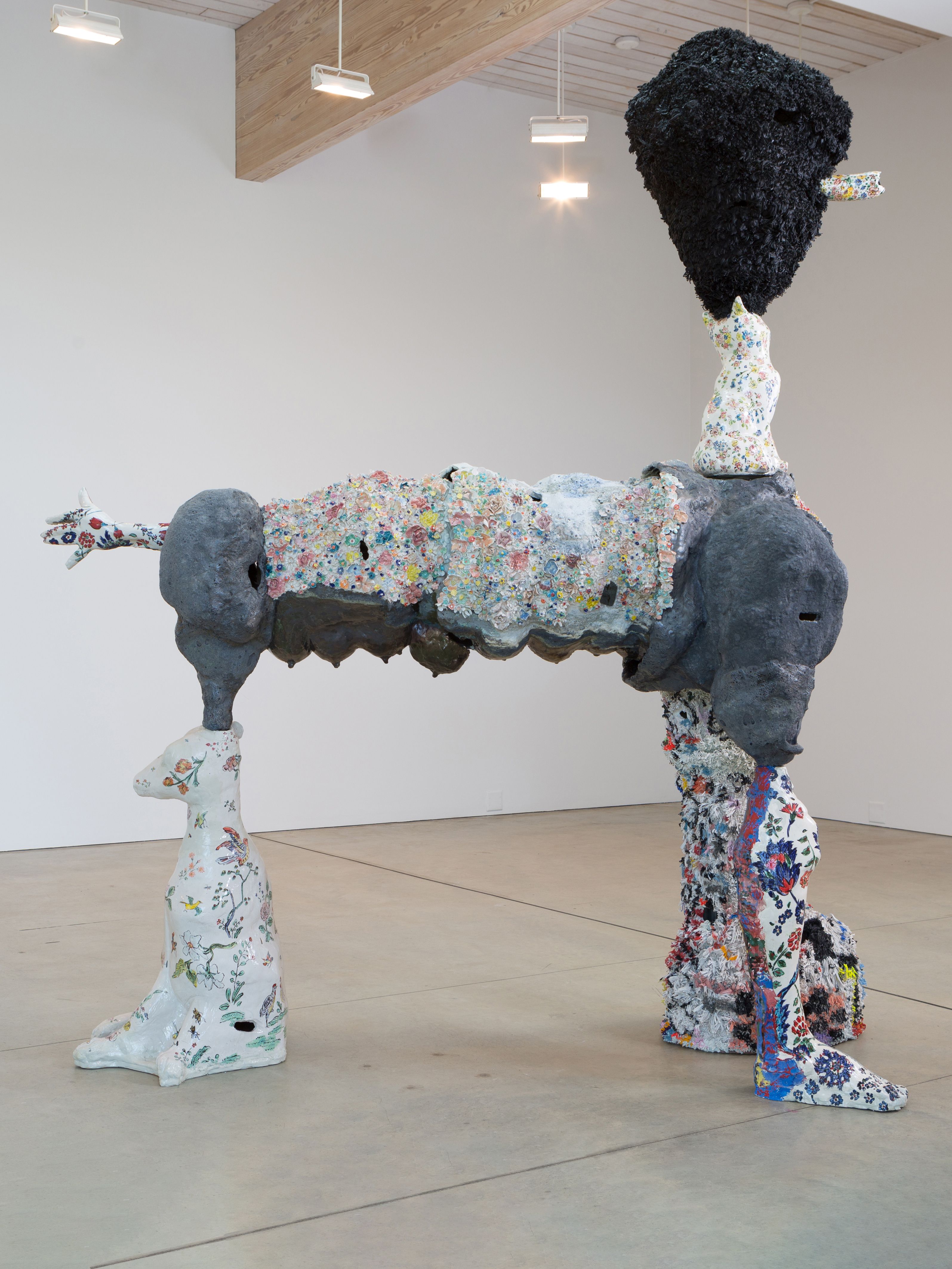 Statues, a solo exhibition, presents selections from bodies of work ranging from 2015 - 2019. The works included probe perceptions of domesticity, presenting traditionally domestic forms and materials in novel and occasionally uncomfortable ways. By naming the exhibition “statues,” Dimattio seeks to highlight the representation of the figure, a consistent thread throughout the work. She makes frequent reference to the female body—a form historically overwhelmed by the trappings of domesticity. Through the language of decorative motifs, DiMattio alludes to the complex relationship between the female body and domestic function. Her explorations offer new approaches to materials and form—ones which seek to empower, rather than imprison. By employing porcelain as a primary medium, DiMattio references the deep history of the material, and its use in a variety of cultures and histories. The exhibition invokes artifacts such as the Venus of Willendorf and ancient Greek depictions of Venus, as well as quotidian objects such as pillows and children’s toys. DiMattio fuses these disparate lineages together into a new, connected whole, where decorative elements are reimagined as grotesque, and traditional notions of beauty are questioned.