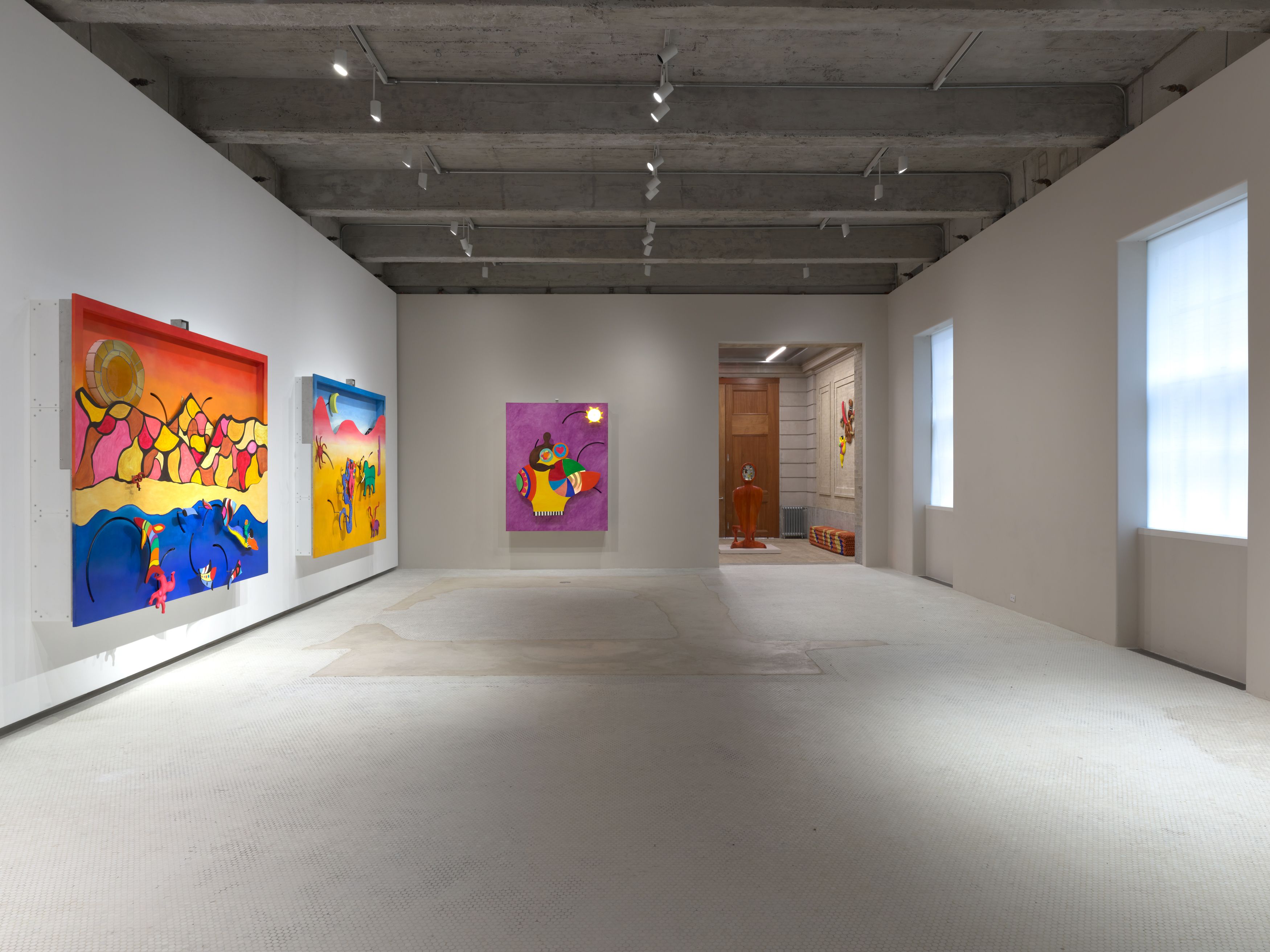 This April, Salon 94 is proud to present our second solo exhibition of French-American artist Niki de Saint Phalle, featuring five works of her late-career Tableaux Éclatés, the series first exhibited in her retrospective at the Musée d'Art Moderne de Paris in 1993. The dynamic Tableaux Éclatés (“Burst Paintings”) are vibrant, mechanized pictures depicting landscapes upon which animals and still lifes, as well as her trademark Nanas, dance across beaches, deserts, and seas. Each painting’s composition is animated through an intricate motorized armature activated through a photo sensor: when the artwork recognizes a viewer, internal motors trigger motion of the work’s disparate elements or illuminate the scene with brilliant electric bulbs.