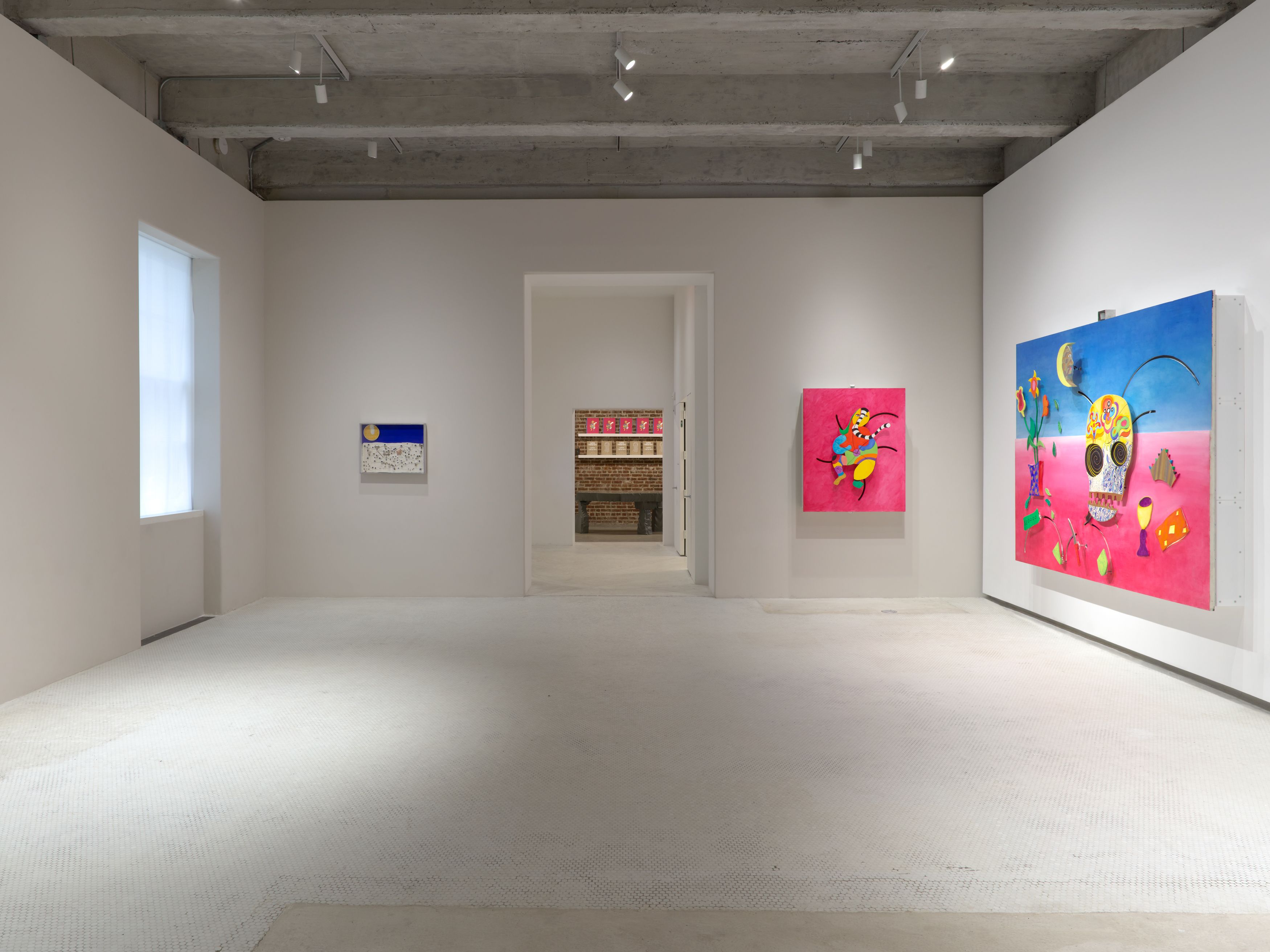 Joining the Tableaux Éclatés is Saint Phalle’s fountain, La femme et L'oiseau fontaine (1967-1988), installed inside for the first time following its U.S. debut at the artist’s MoMA PS1 retrospective in 2021. Bursting with streaming water, a bathing suit-clad Nana balances, arms outstretched in joyful proclamation, atop a bird whose wings mirror her gesture of open embrace. La femme et L'oiseau fontaine follows Saint Phalle’s commitment to public art, specifically fountains, the most famous of which, Fontaine Igor Stravinsky (1983), greets visitors to Paris’ Centre Pompidou.