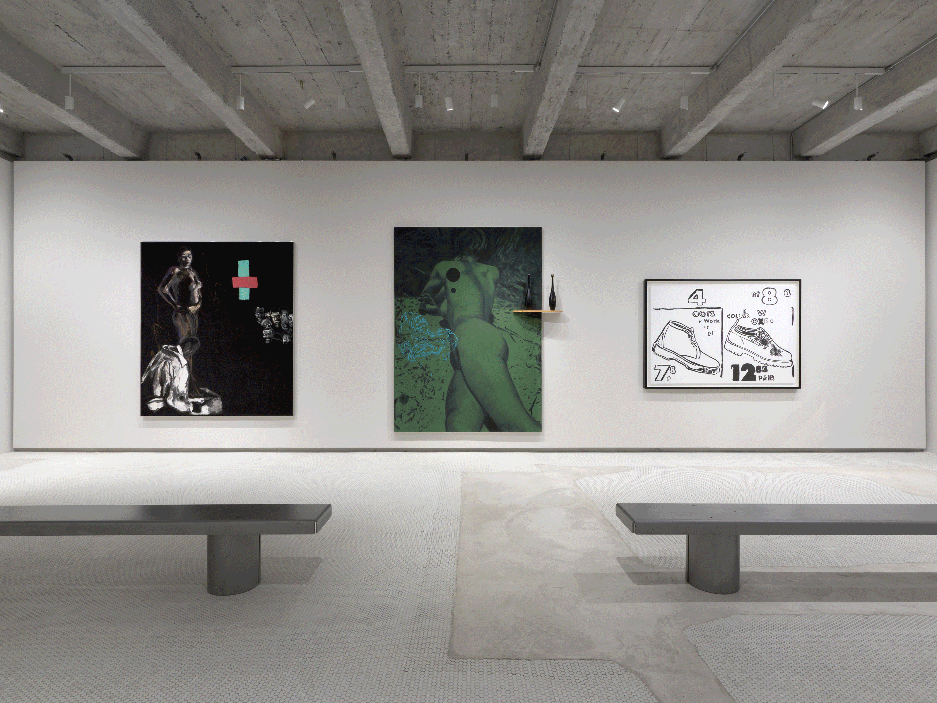 “Painting has all this incredible baggage; it embodies all the signs of the last millennium of male hegemony. I sought recontextualize it, to reclaim it for myself and make room for others.”On the first floor of Salon 94 will be a display of works by contemporaries and precursors of Kass’—David Salle, Julian Schnabel, Andy Warhol, Jasper Johns, Jackson Pollock, Robert Moskowitz, and John Baldessari—some works with direct references to the paintings upstairs, and others serving a representative role. The combination of the two floors is an attestation to the multiple histoires and trajectories our current moment carries forth simultaneously.