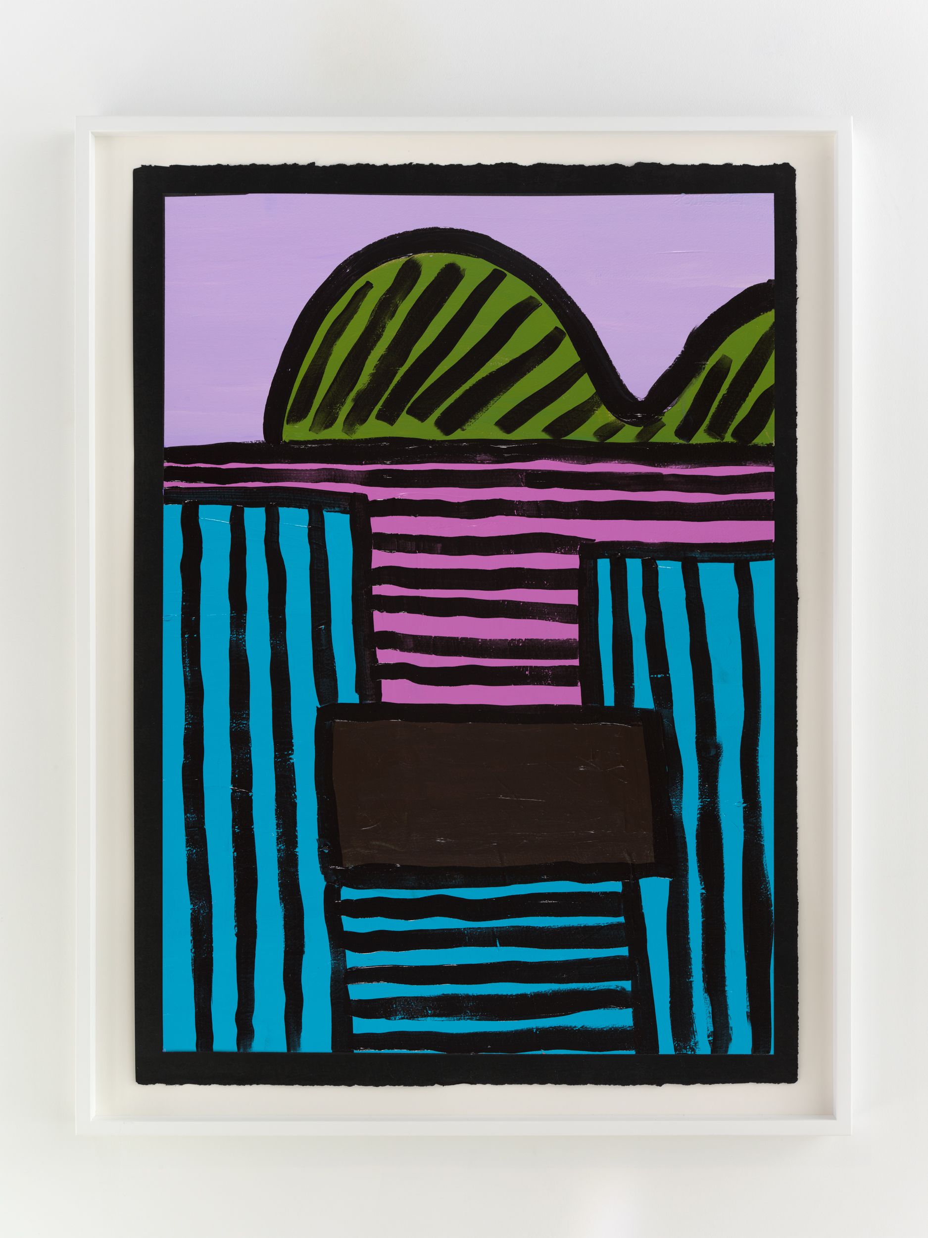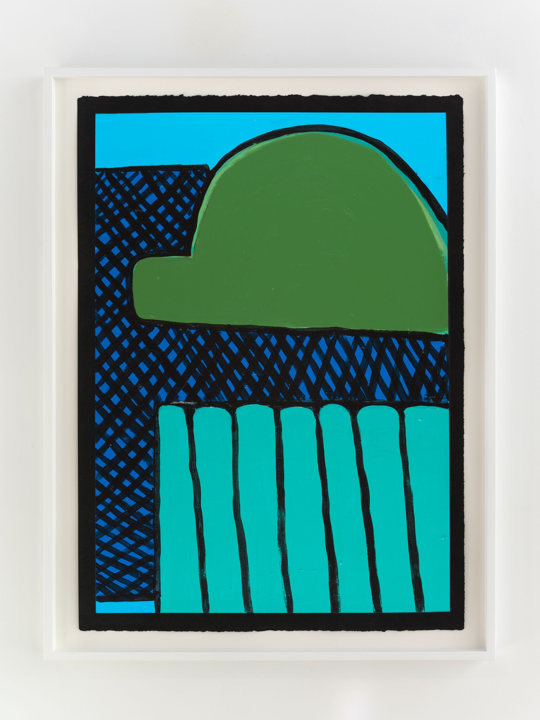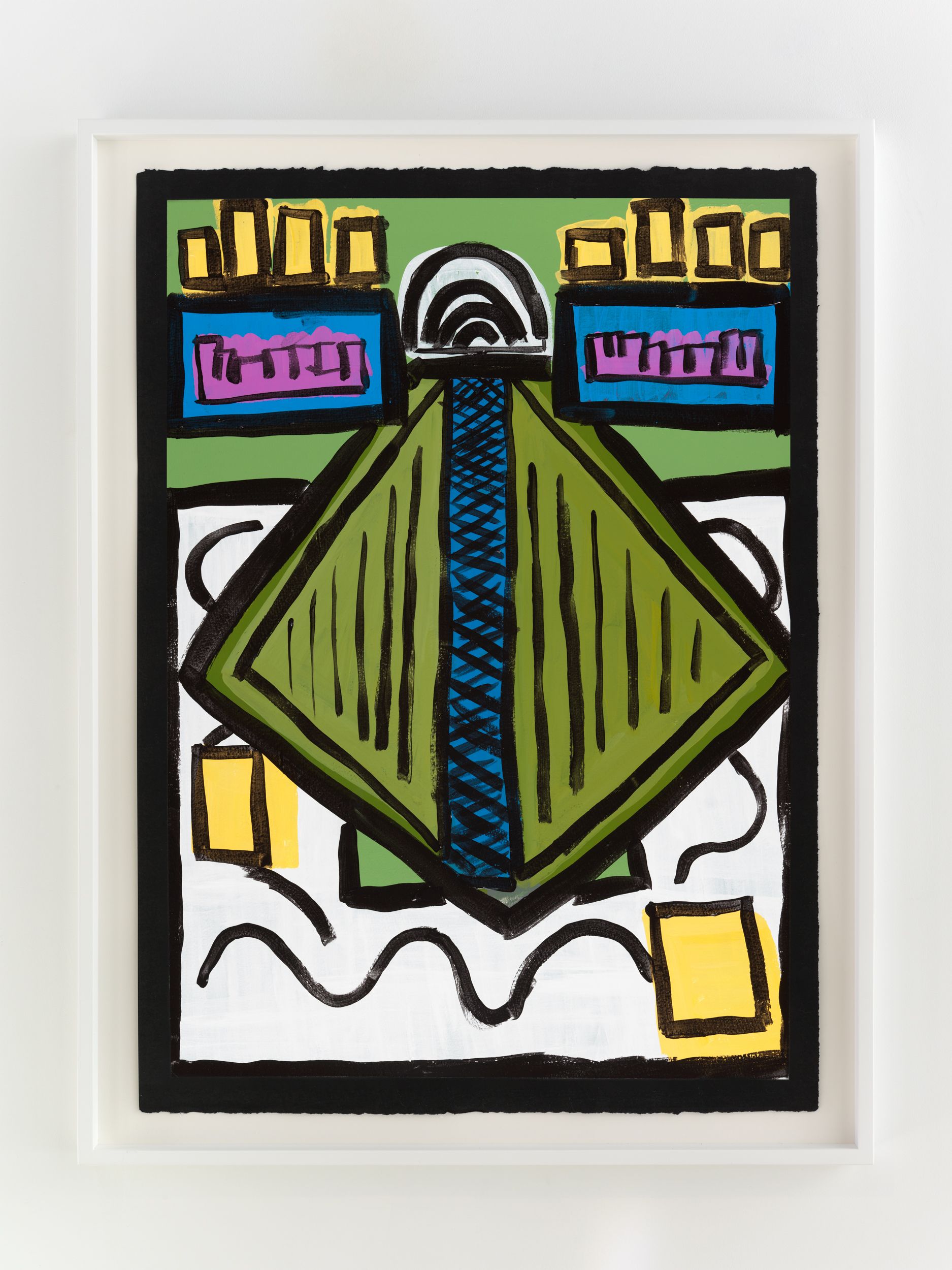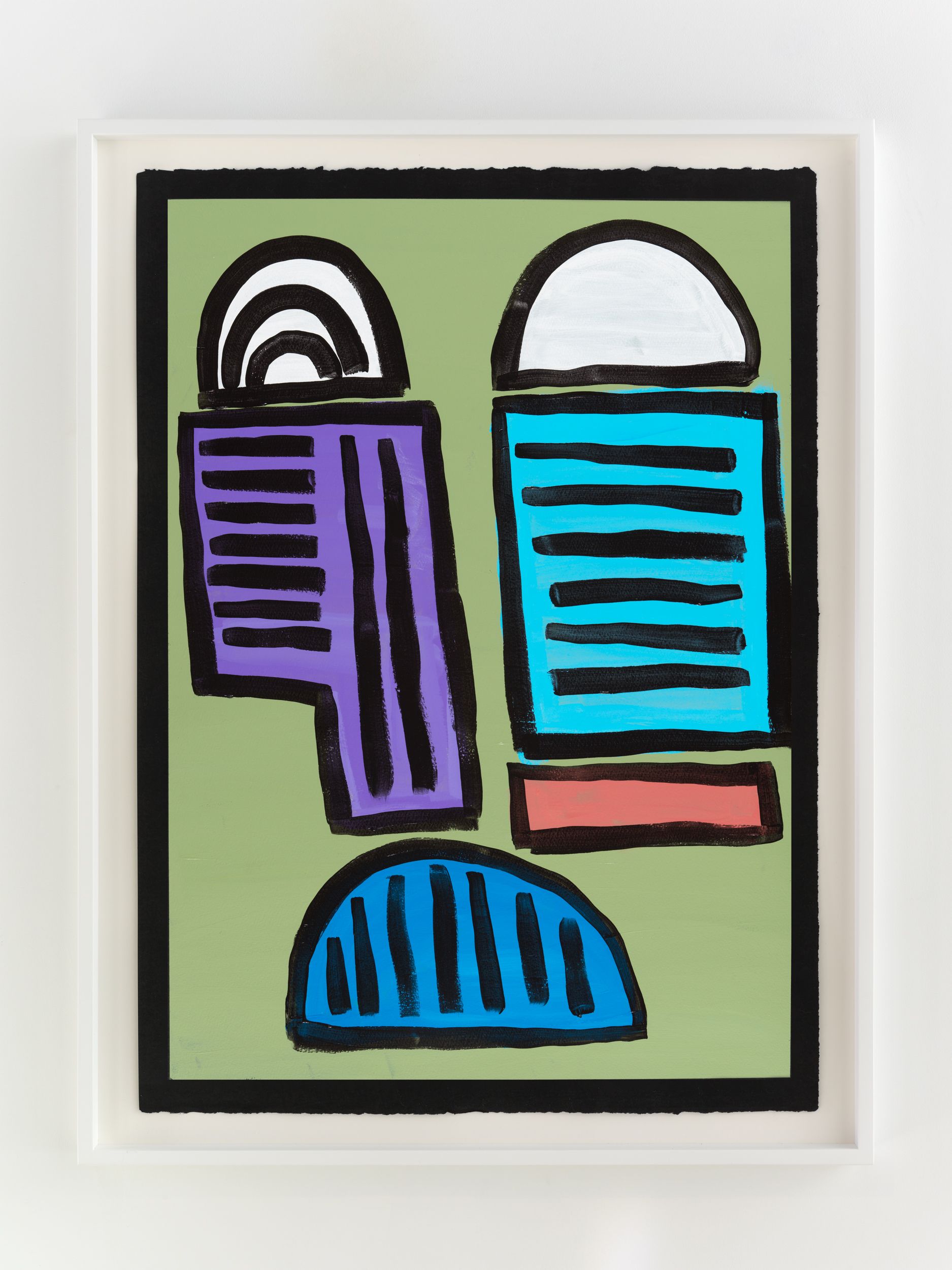 Alongside these sculptural objects are twenty joyous abstract paintings translating memories of childhood through a form of non-verbal storytelling expressed as vivid colors and thick black lines, shapes, and forms. Titles are also drawn from everyday expressions like “Carry on, son”, “Don’t give up just yet”, and “Baptize you in the name” (all works 2021). Corbett builds up layers of colors to create a visual analogue to musical notations used by various musicians. She adds, “black lines in the works serve as a graphic and expressive rendition of corporeal Blackness whilst, the use of black paper reflects what it means to be Black in different countries or the African diaspora.”