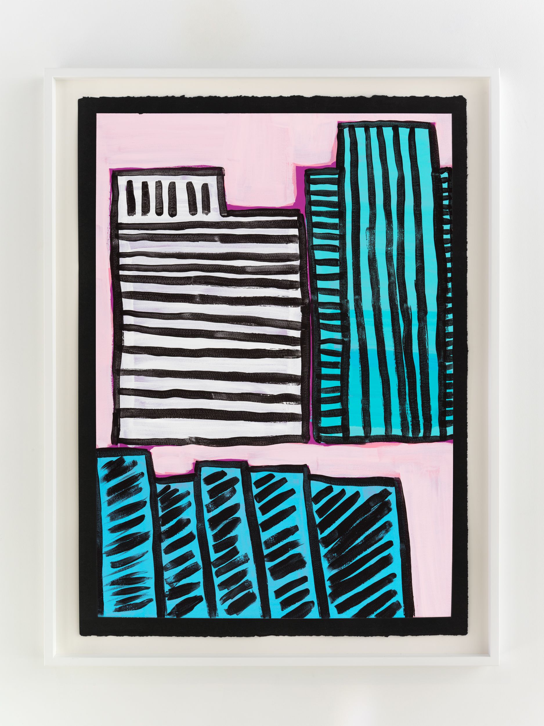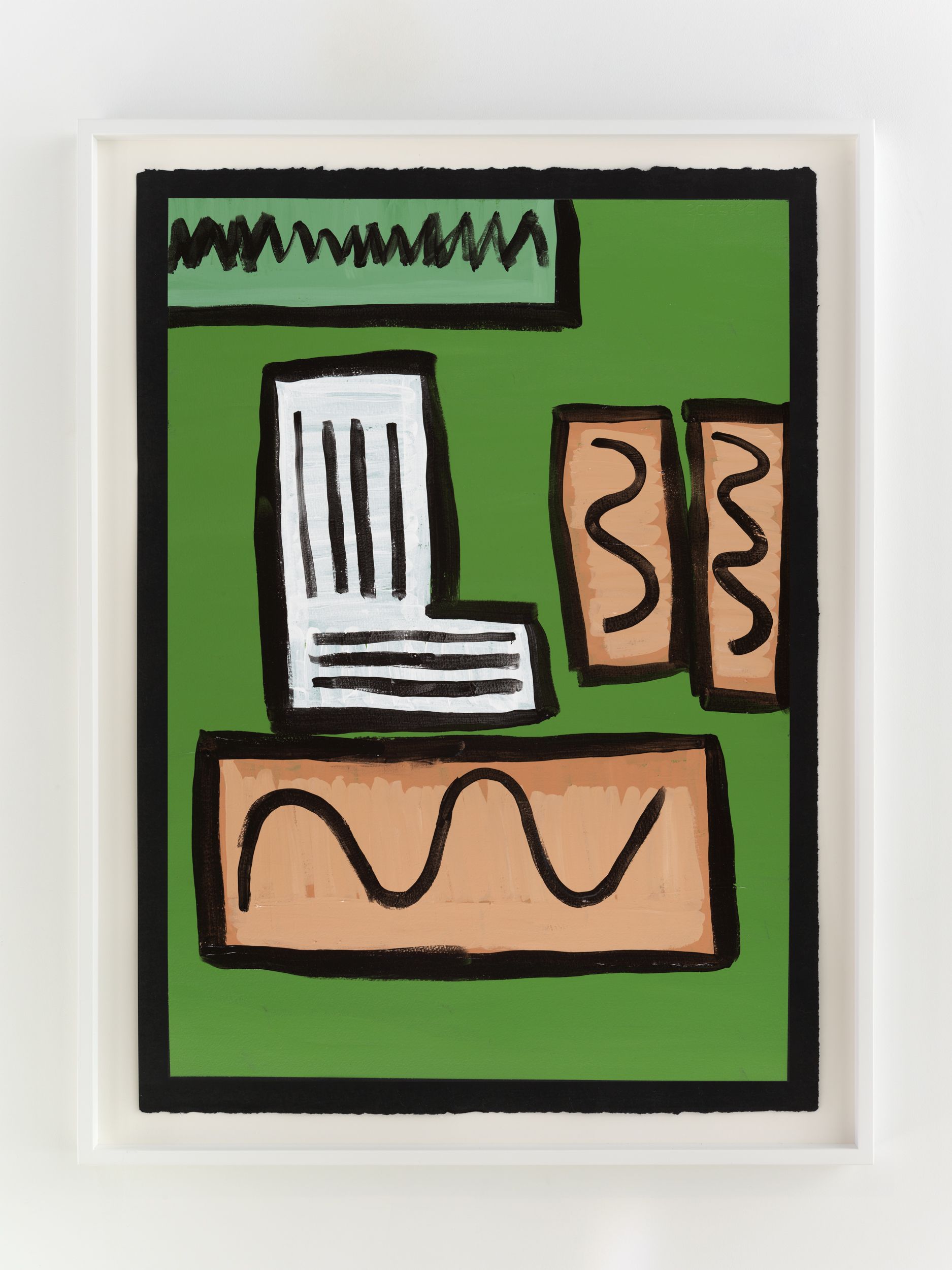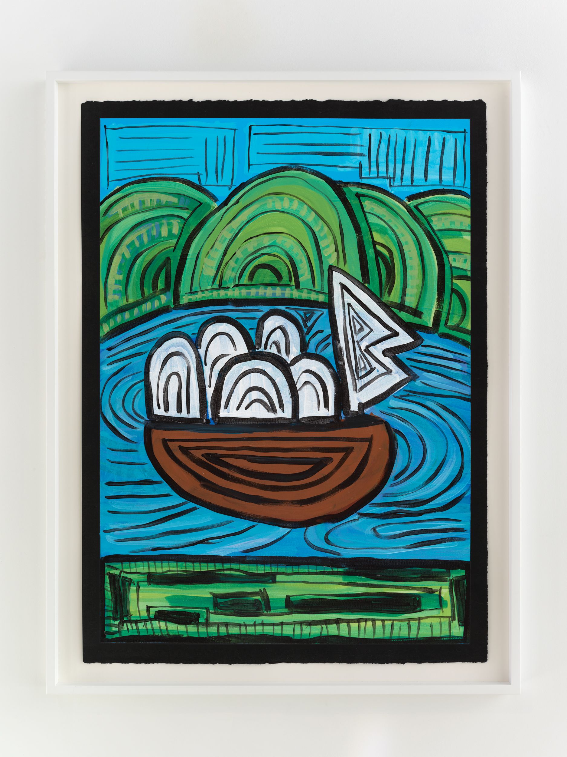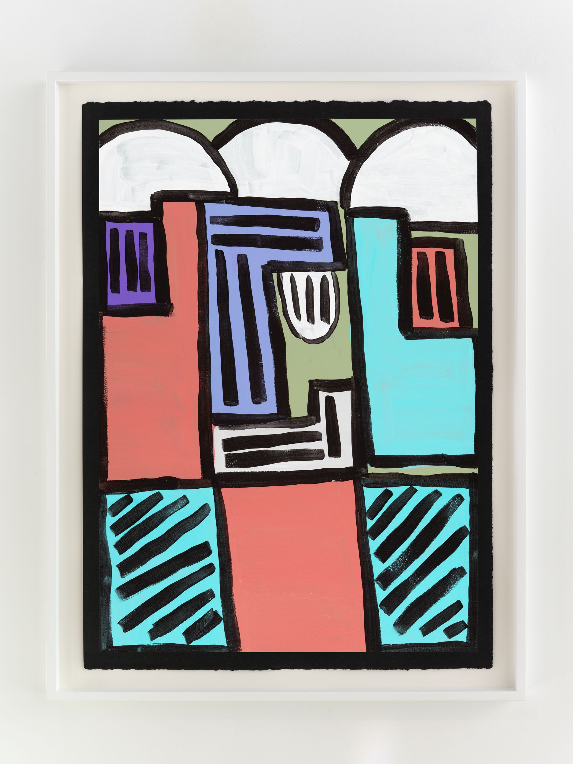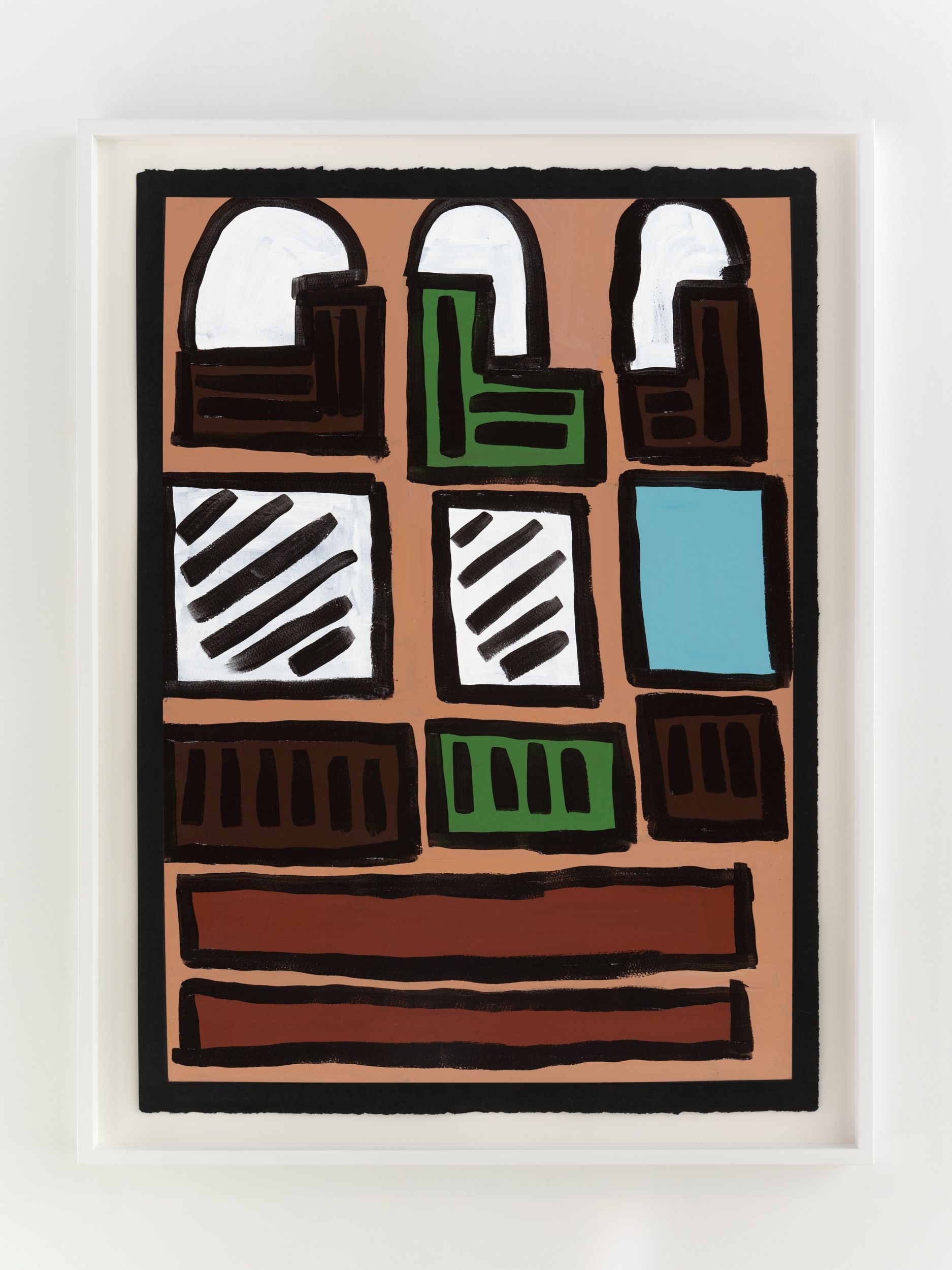 Alongside these sculptural objects are twenty joyous abstract paintings translating memories of childhood through a form of non-verbal storytelling expressed as vivid colors and thick black lines, shapes, and forms. Titles are also drawn from everyday expressions like “Carry on, son”, “Don’t give up just yet”, and “Baptize you in the name” (all works 2021). Corbett builds up layers of colors to create a visual analogue to musical notations used by various musicians. She adds, “black lines in the works serve as a graphic and expressive rendition of corporeal Blackness whilst, the use of black paper reflects what it means to be Black in different countries or the African diaspora.”