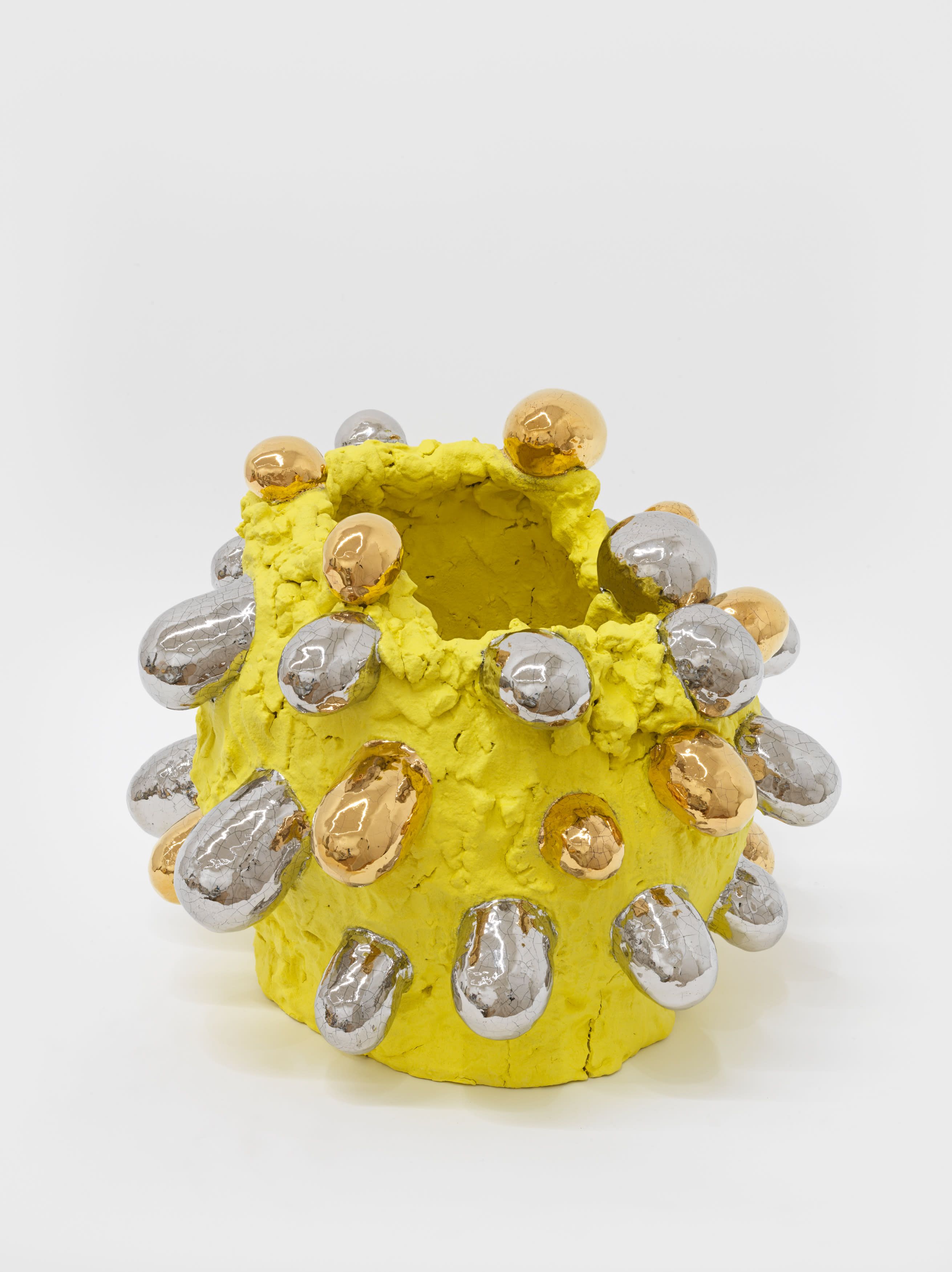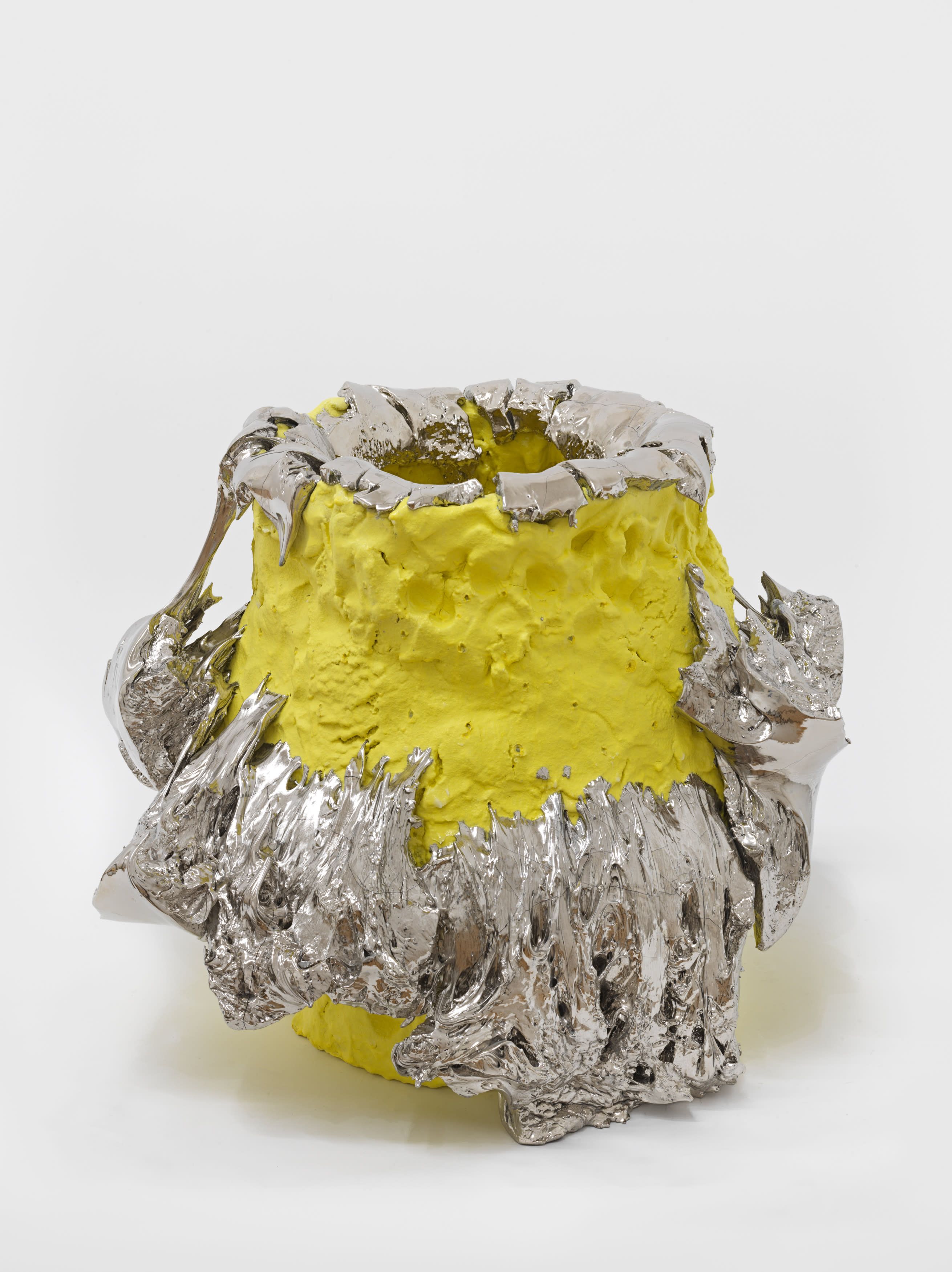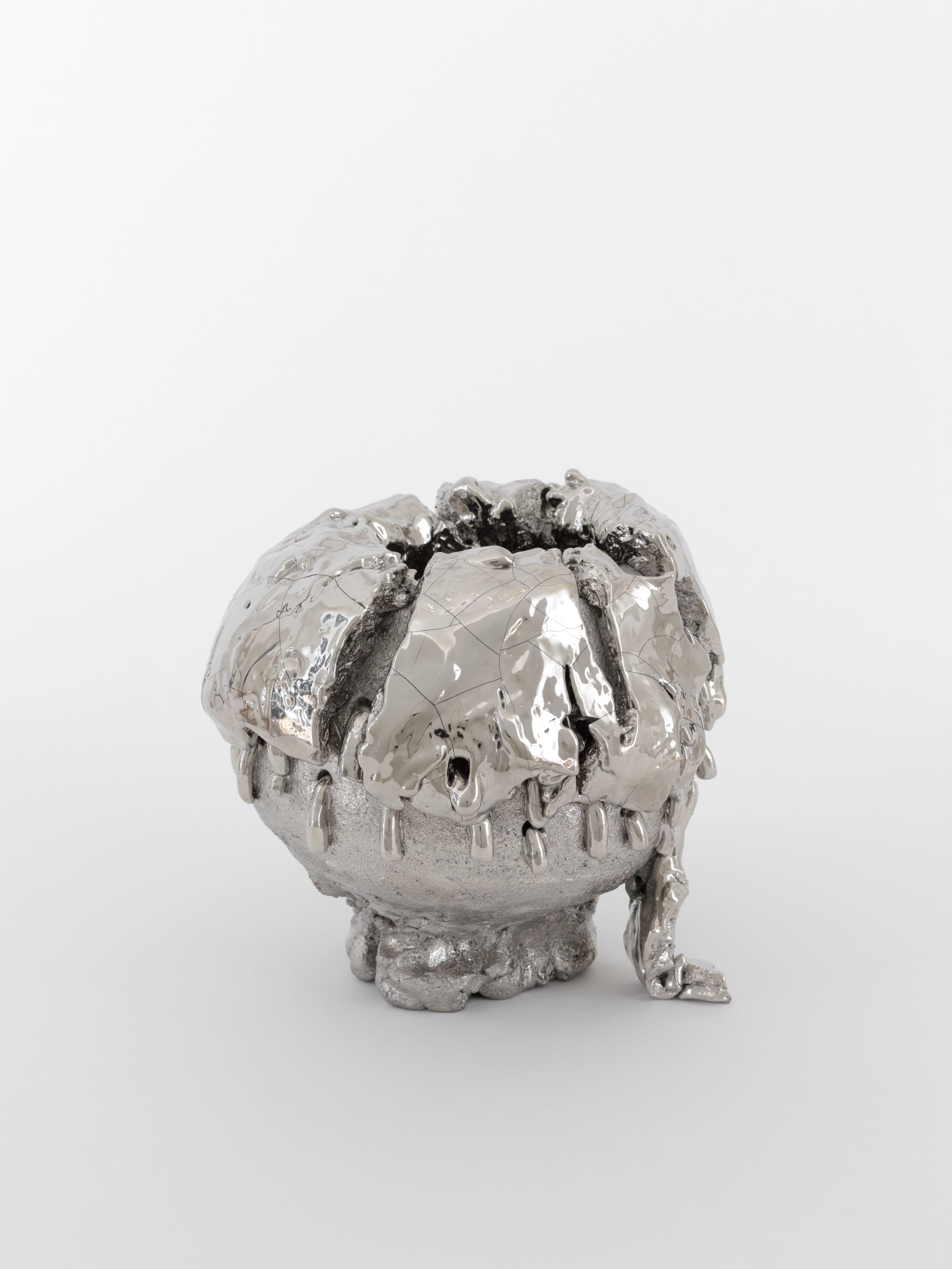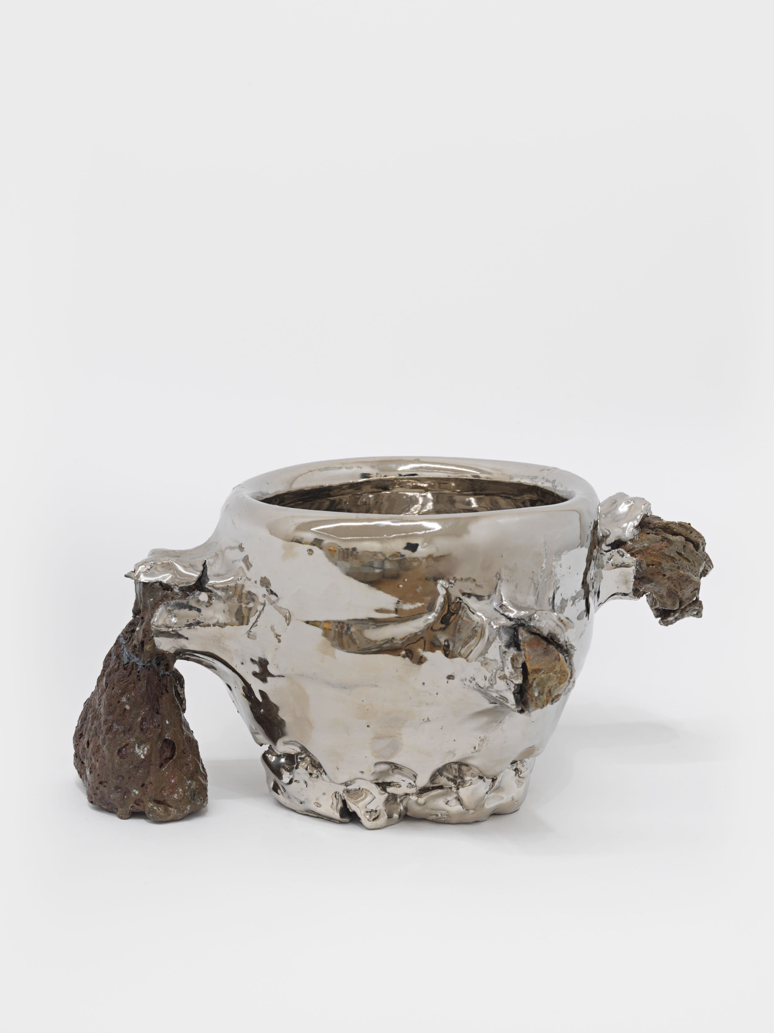 In 1967, Richard Serra published his famed Verblist, an inventory of more than 100 verbs that he described as “actions to relate to oneself, material, place, and process.” The sheer abundance of Serra’s verbs, like “to heap,” “to flow,” and “to swirl,” reveal a multiverse of artistic possibilities, but also the artist’s curiosity about structure and limitations. Few artists working in the medium of ceramics take this lexicon to heart more than Takuro Kuwata. Kuwata’s fantasias in clay effervesce with verbs. A single work can simultaneously shine, pop, droop, shiver, bubble, peel, sweat, crack, calve, burst, shimmer, sag, and flake.