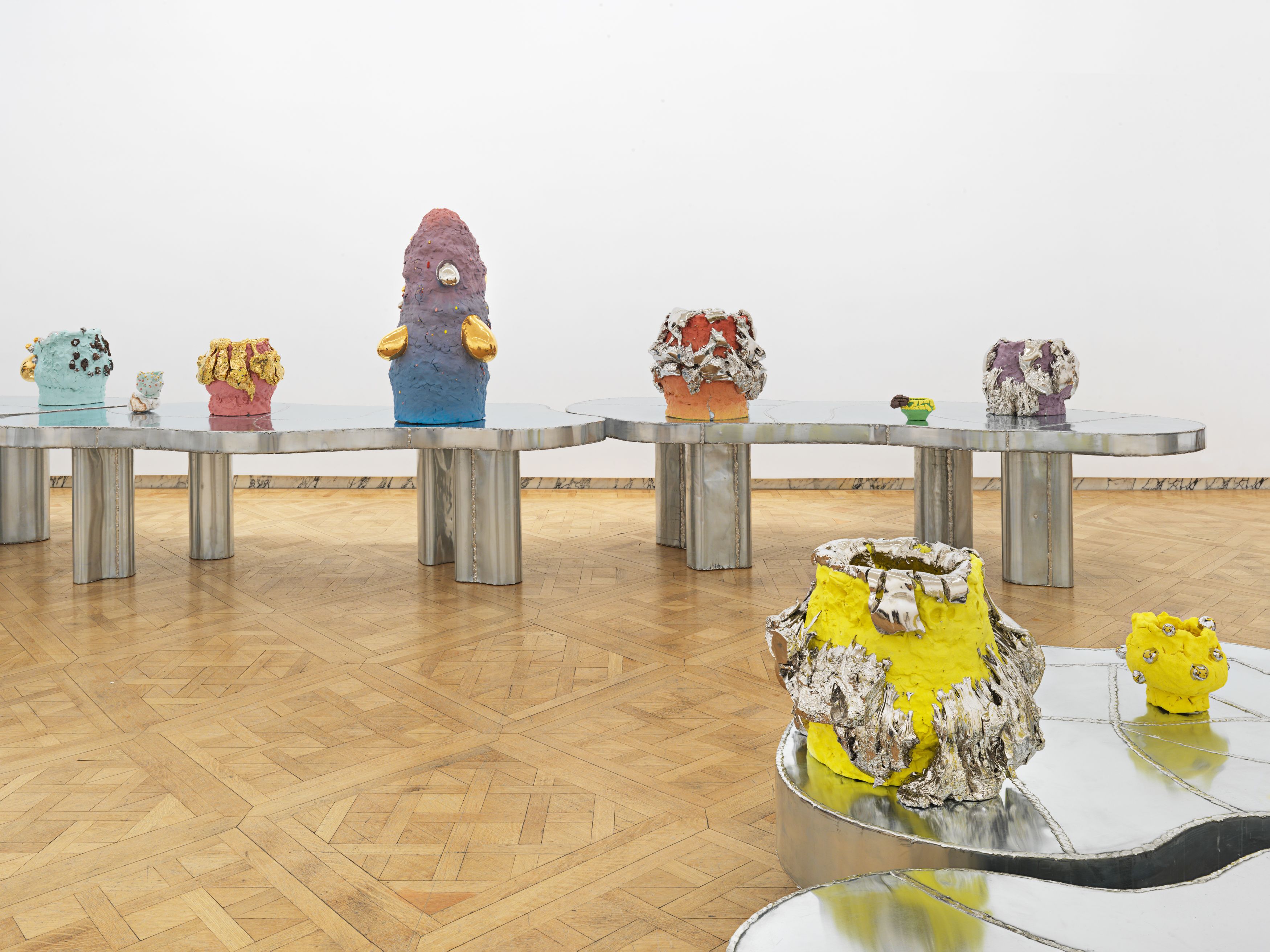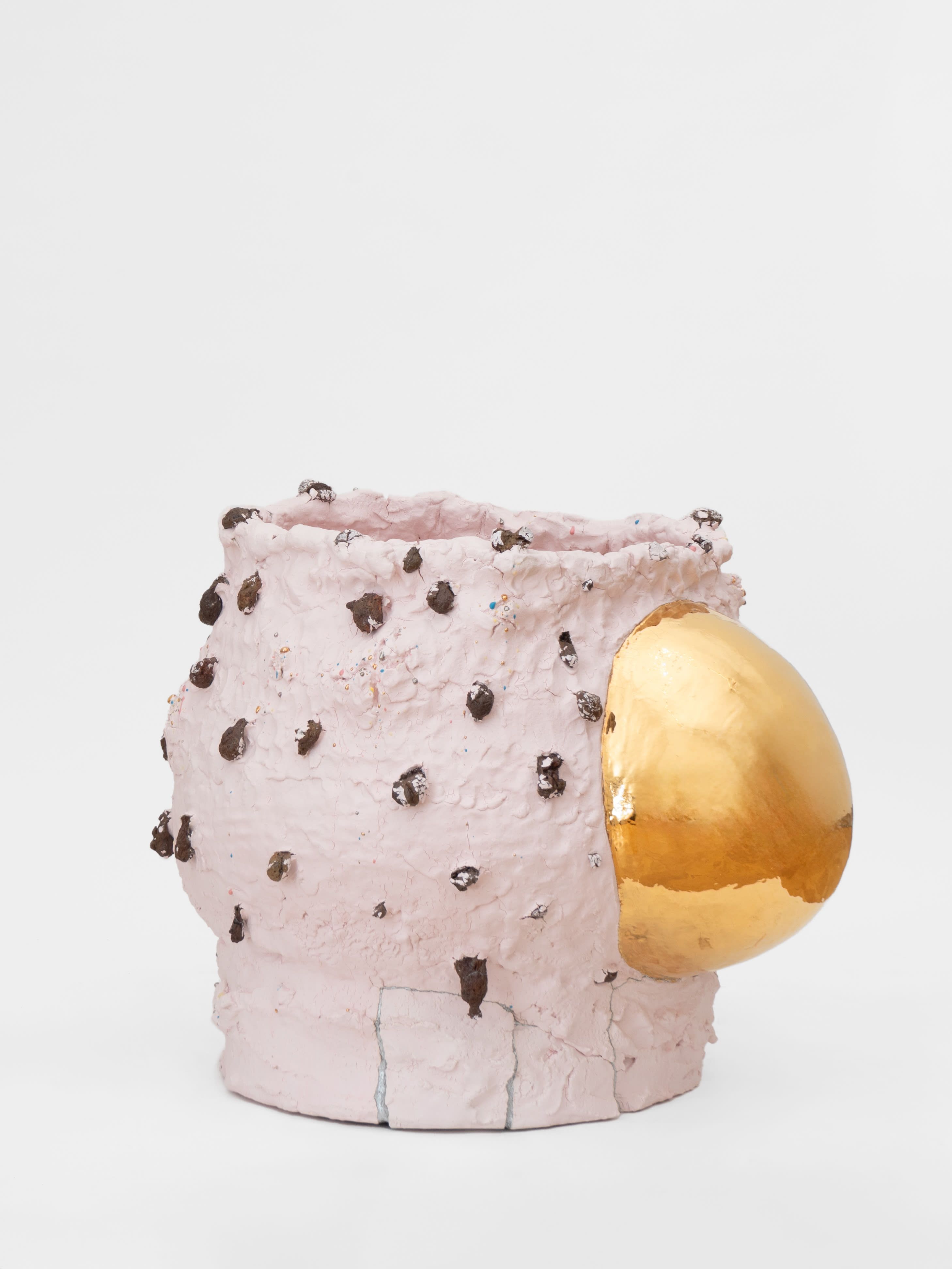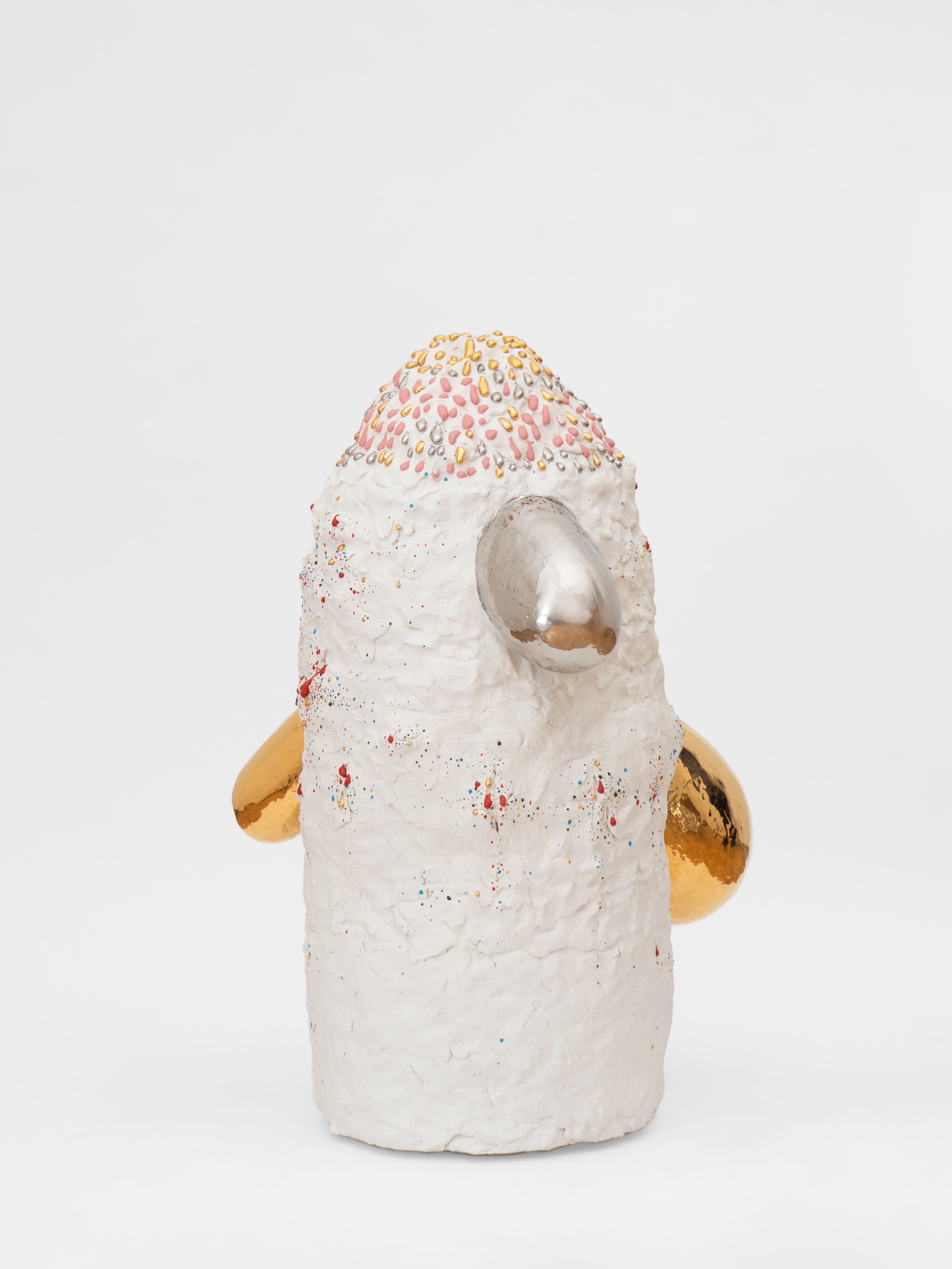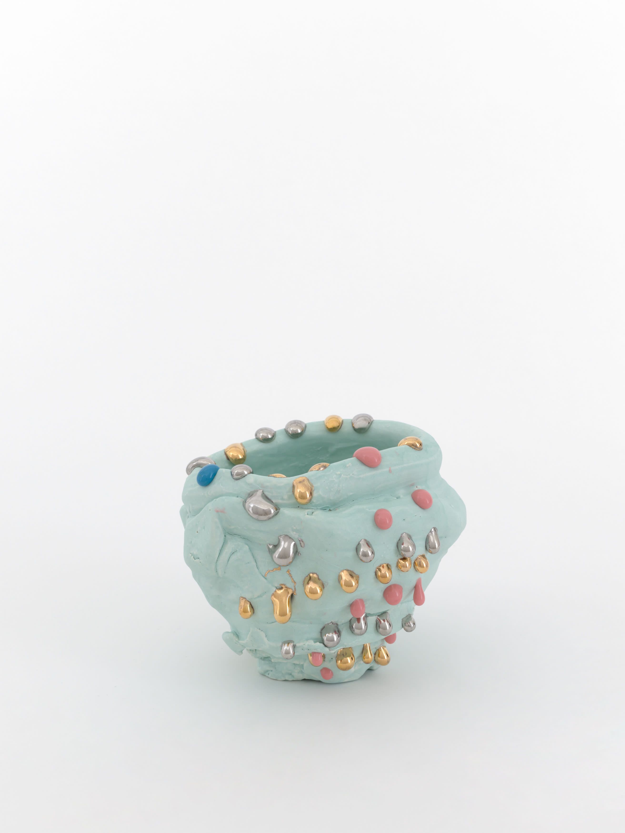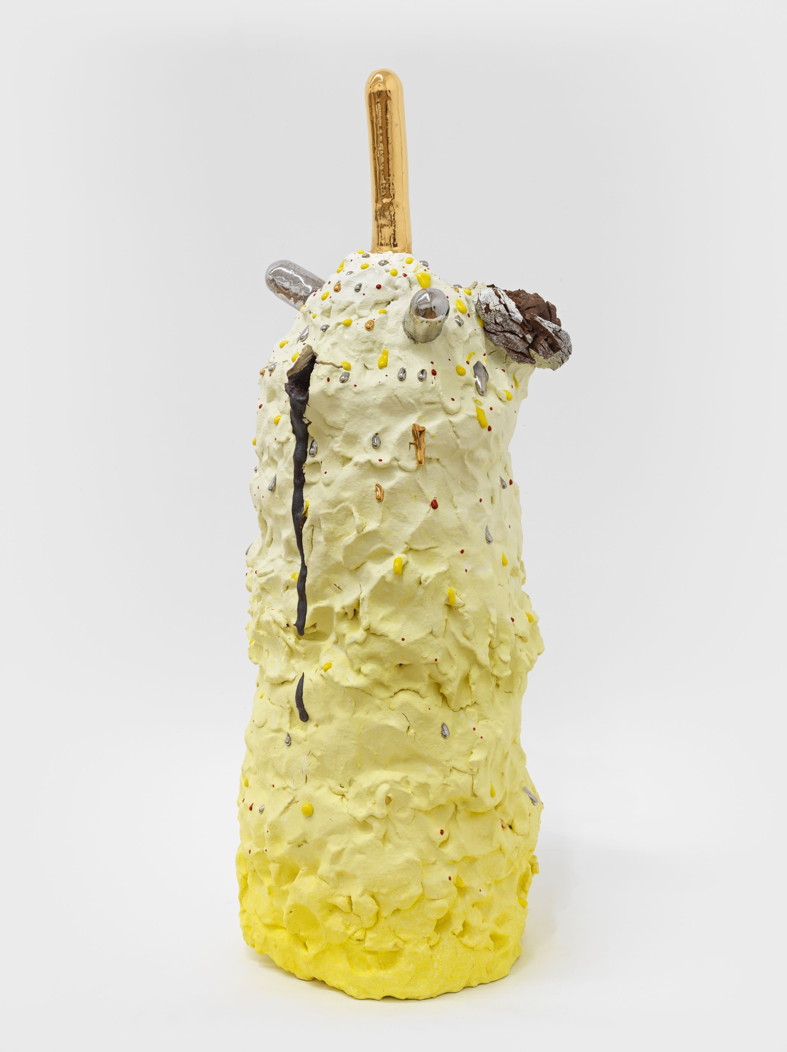 In 1967, Richard Serra published his famed Verblist, an inventory of more than 100 verbs that he described as “actions to relate to oneself, material, place, and process.” The sheer abundance of Serra’s verbs, like “to heap,” “to flow,” and “to swirl,” reveal a multiverse of artistic possibilities, but also the artist’s curiosity about structure and limitations. Few artists working in the medium of ceramics take this lexicon to heart more than Takuro Kuwata. Kuwata’s fantasias in clay effervesce with verbs. A single work can simultaneously shine, pop, droop, shiver, bubble, peel, sweat, crack, calve, burst, shimmer, sag, and flake.