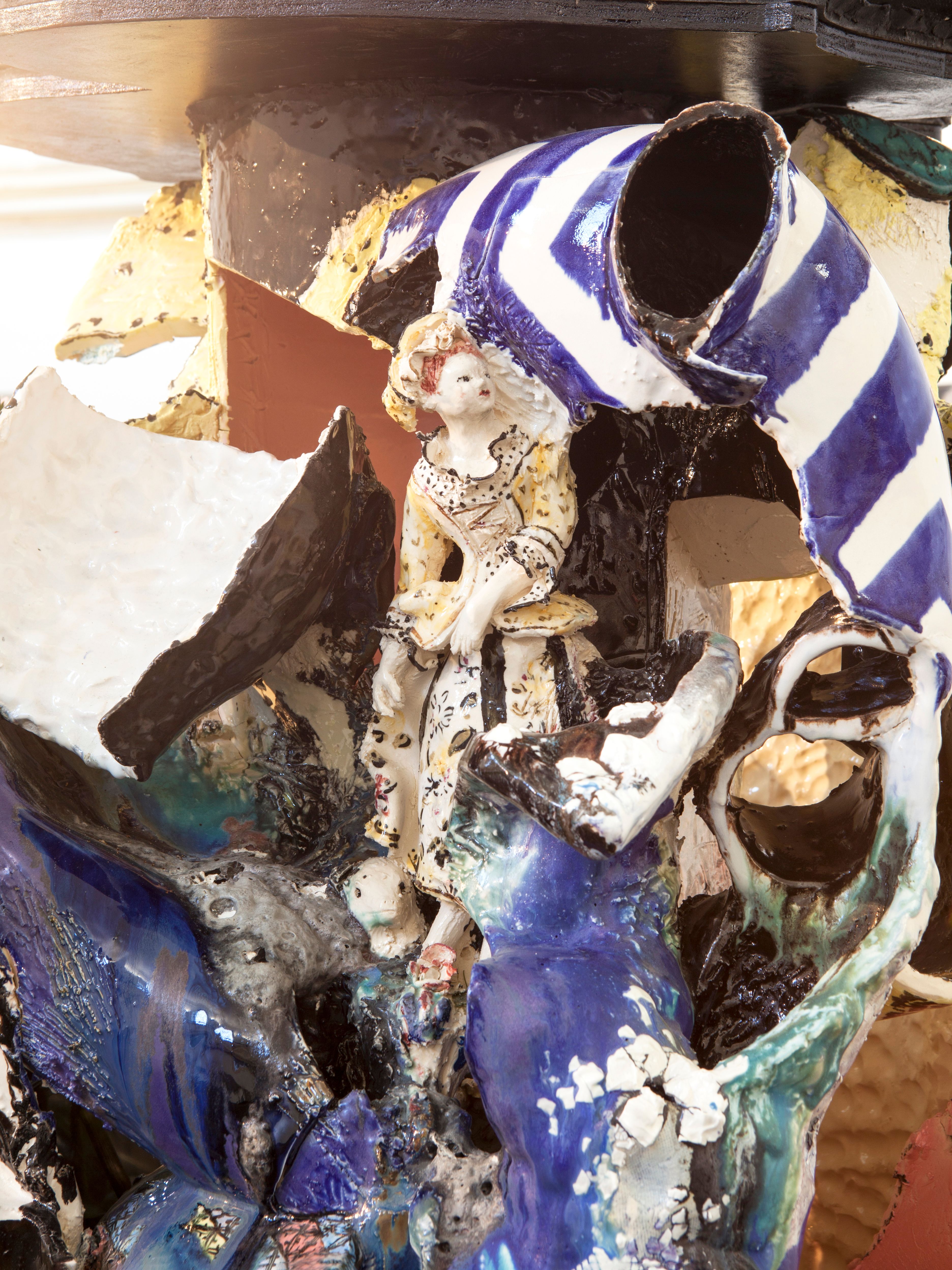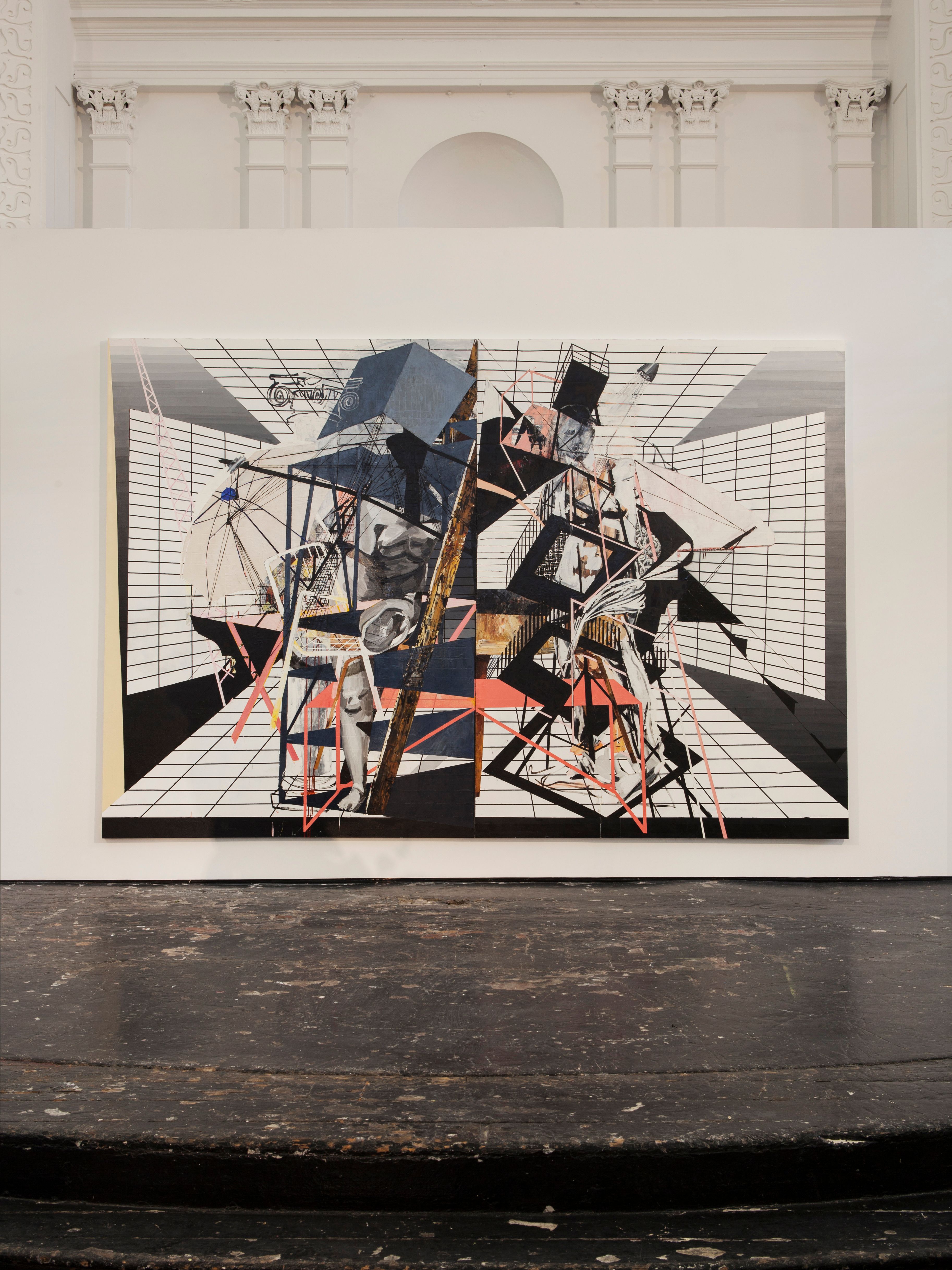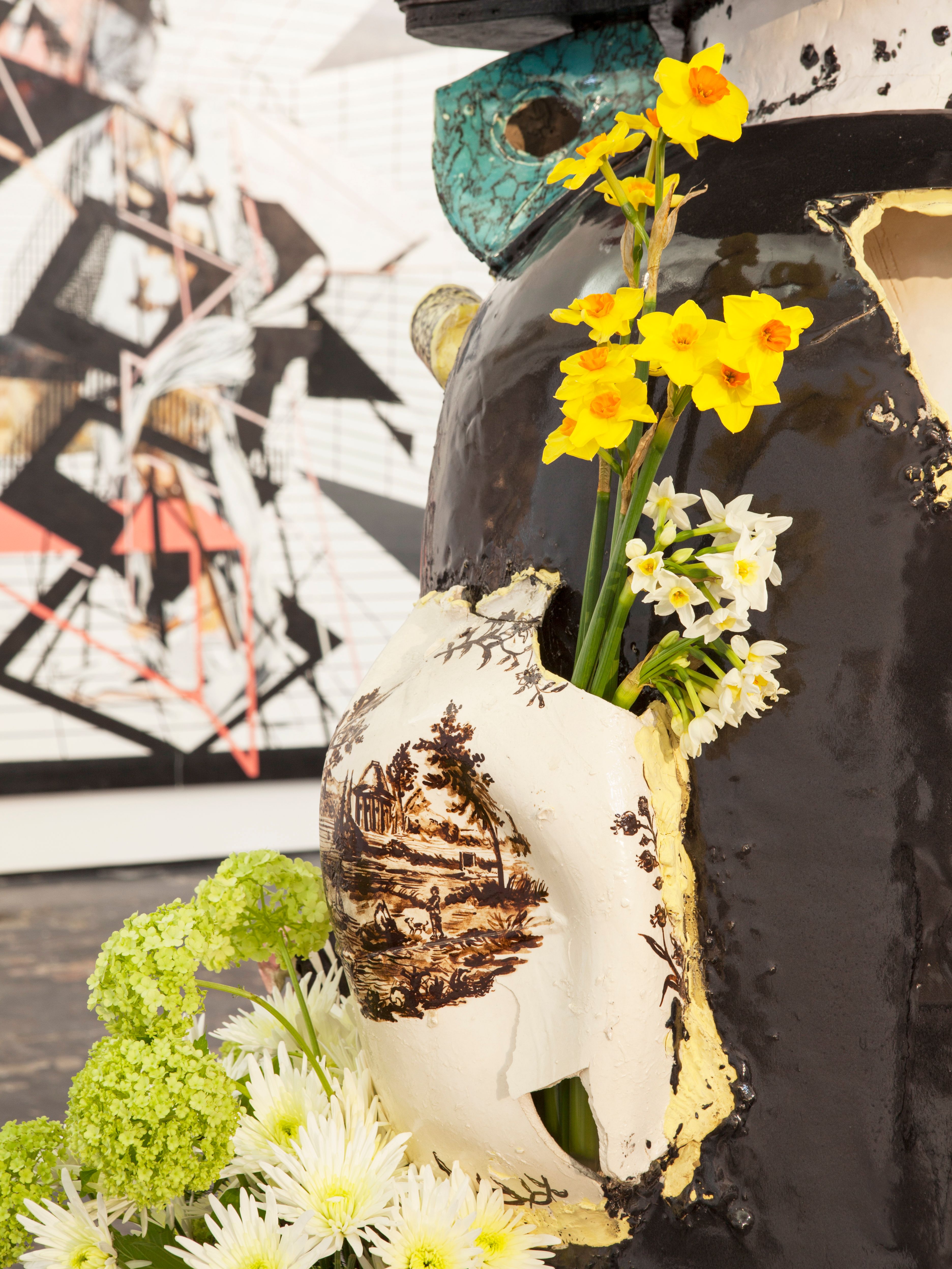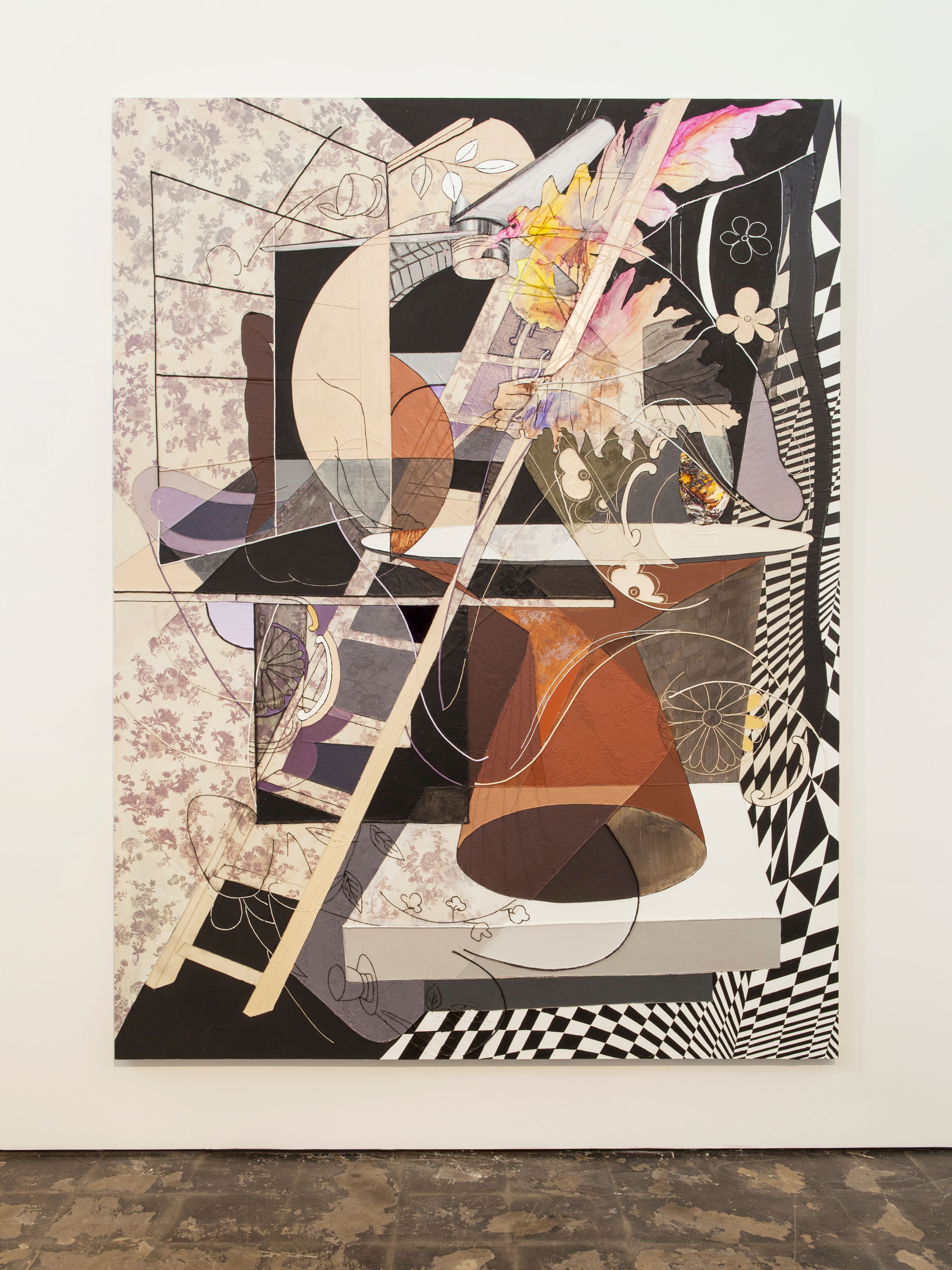Francesca DiMattio's large paintings and ceramic sculptures engage with representations of space, style and technique. DiMattio grafts together handmade interpretations of material which she collects from art history and design sources. Her layered images and sculptures offer us a new experience of space and ask us to consider how interiors, patterns and decorative elements are constructed and depicted.