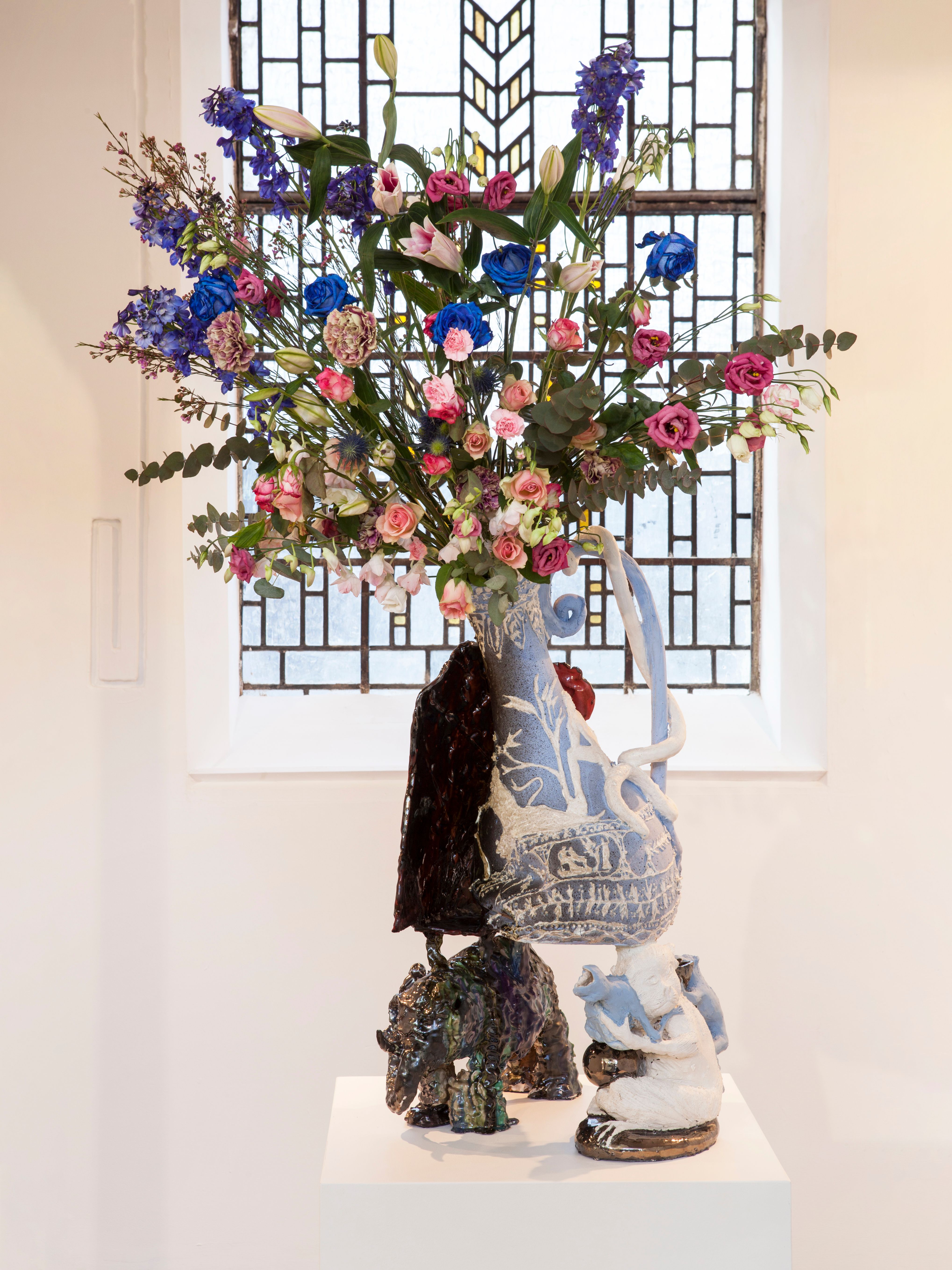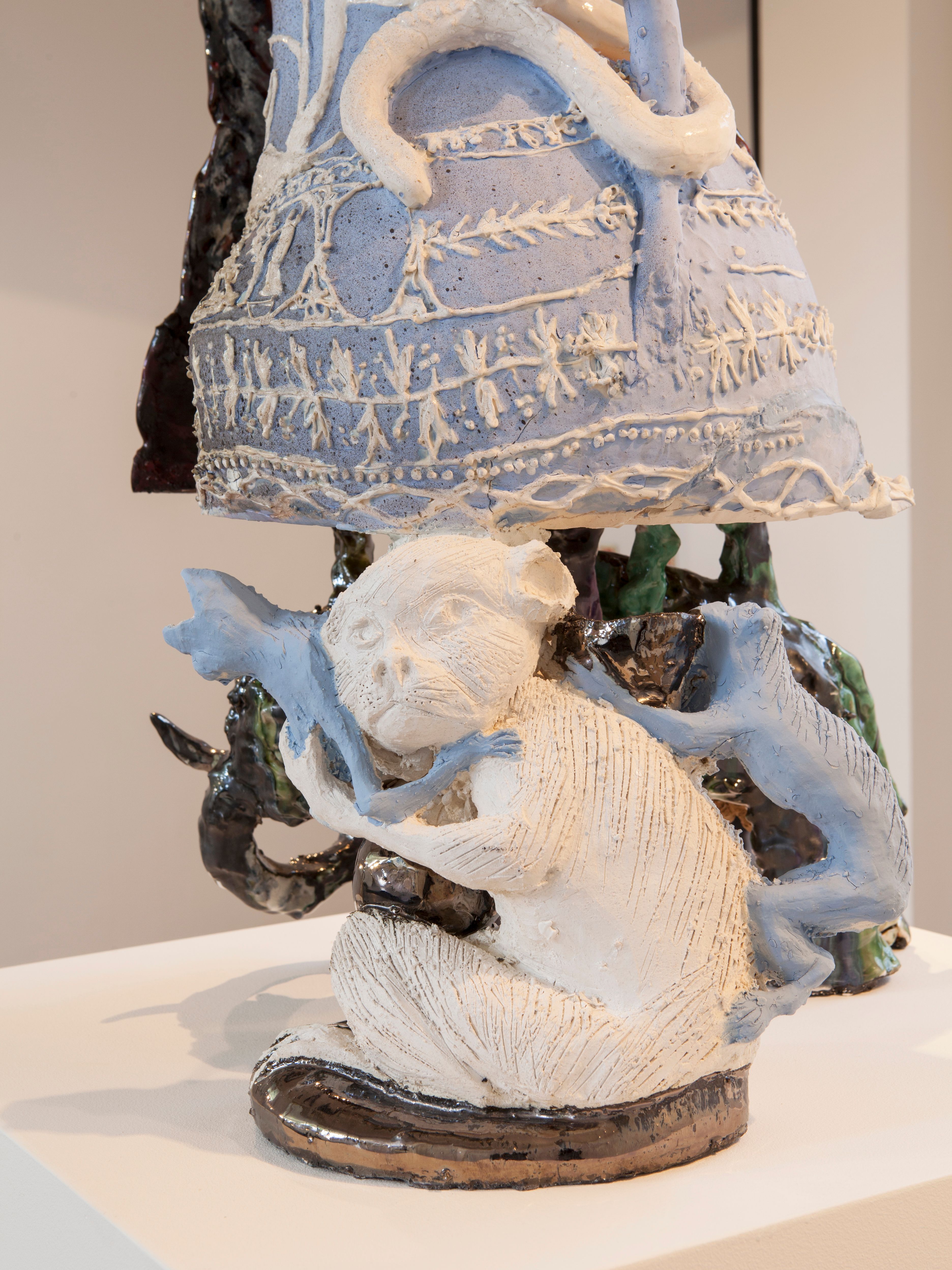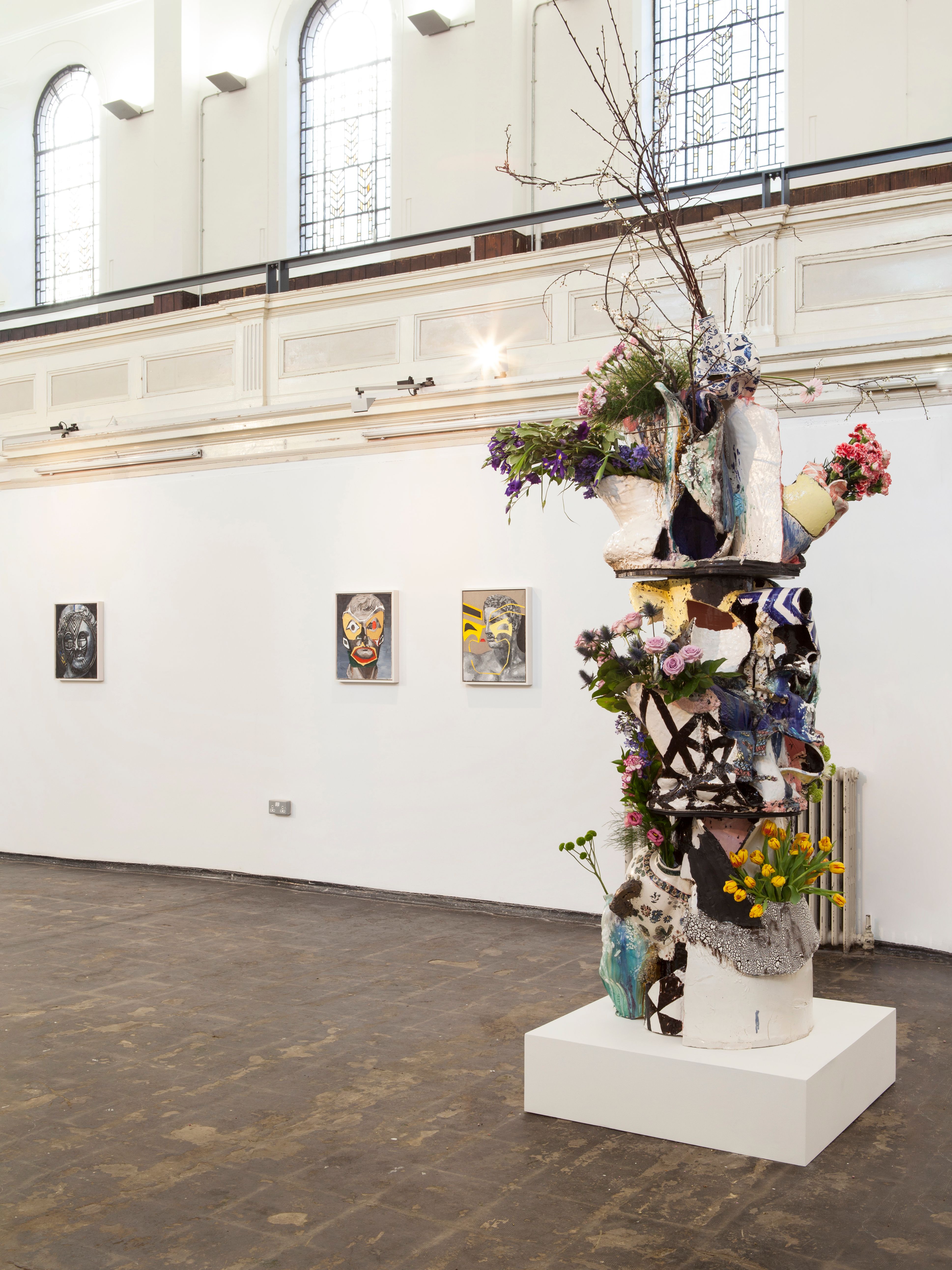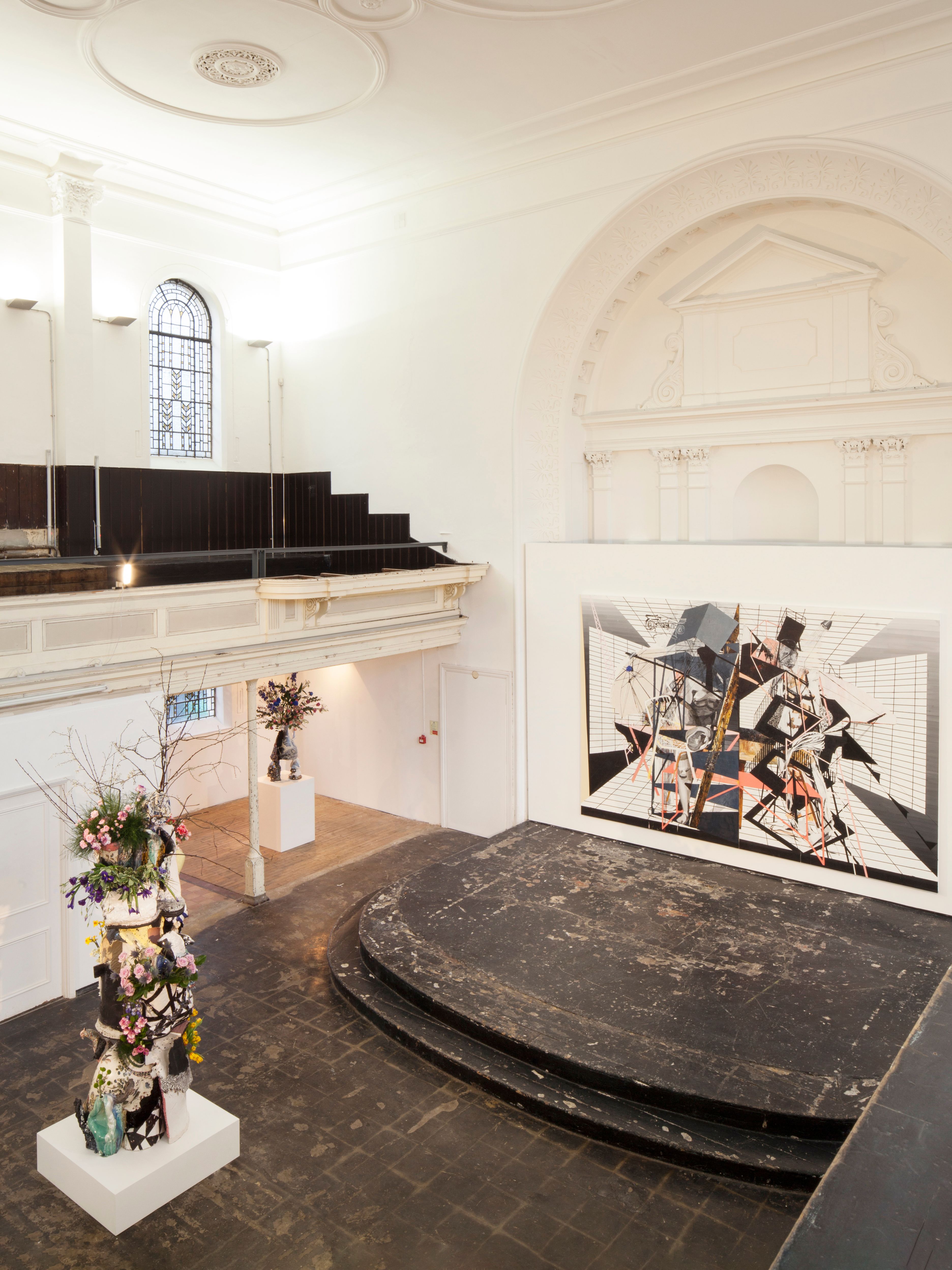 Francesca DiMattio's large paintings and ceramic sculptures engage with representations of space, style and technique. DiMattio grafts together handmade interpretations of material which she collects from art history and design sources. Her layered images and sculptures offer us a new experience of space and ask us to consider how interiors, patterns and decorative elements are constructed and depicted.