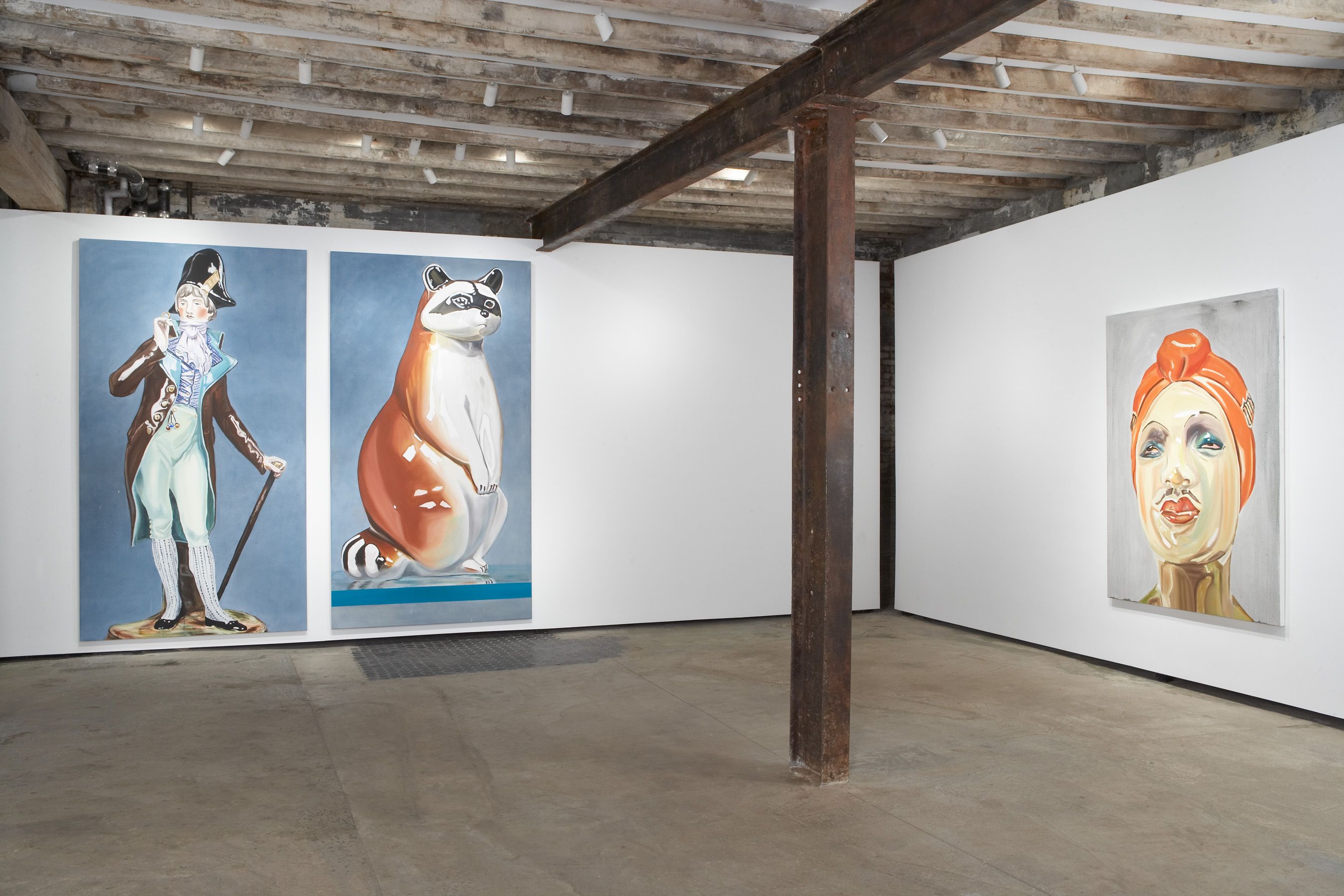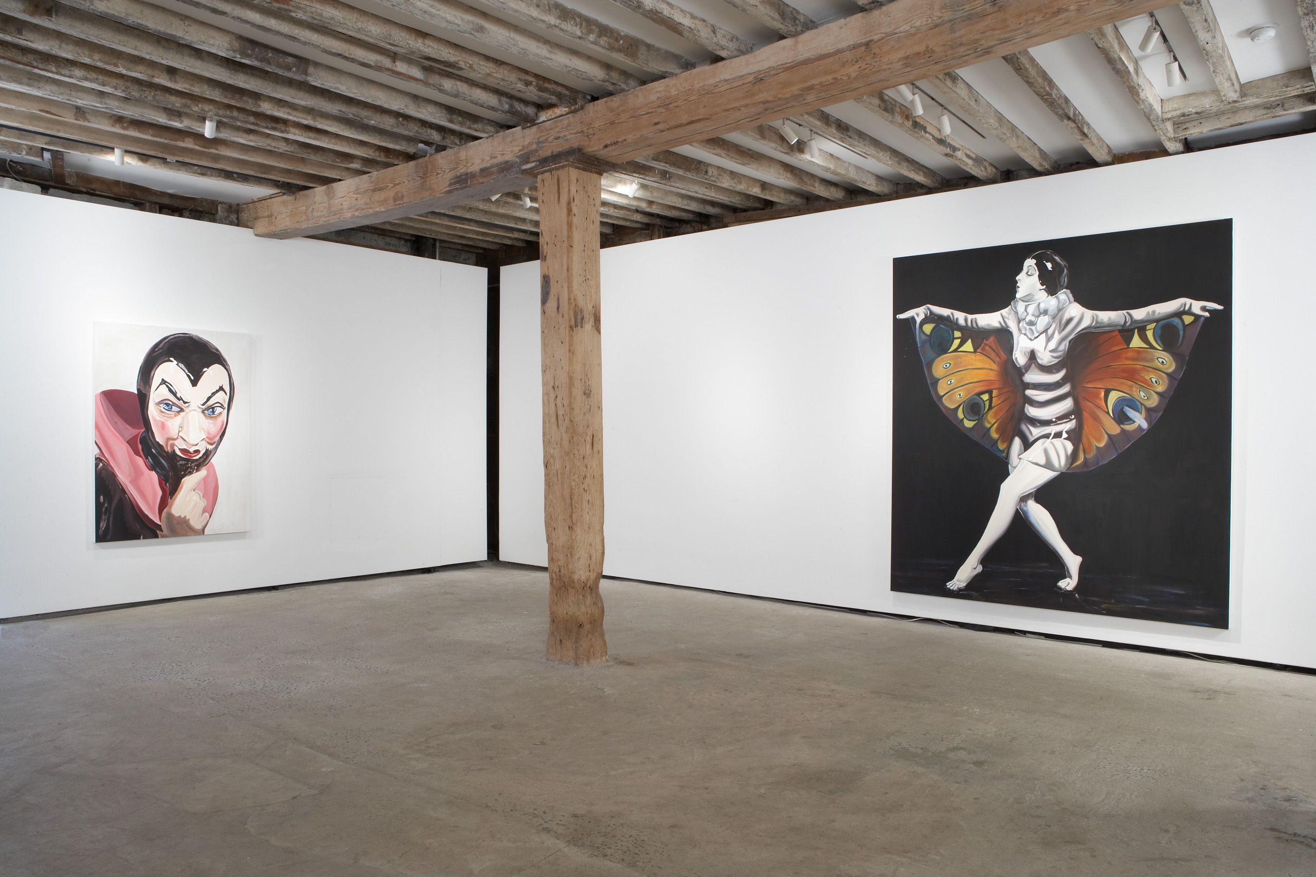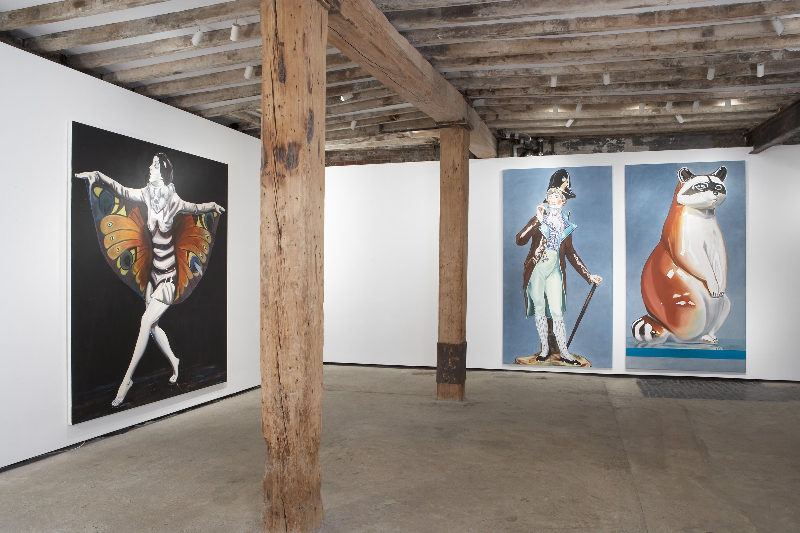 At Salon 94 Bessone will exhibit three paintings of semi-clad women who mimic the poses of classical sculpture. At Salon 94 Freemans, each painting depicts a character from her own theatrical troupe, including Faust, a white-faced Josephine Baker stylized dancer, a dandy, a raccoon, and a eunuch.